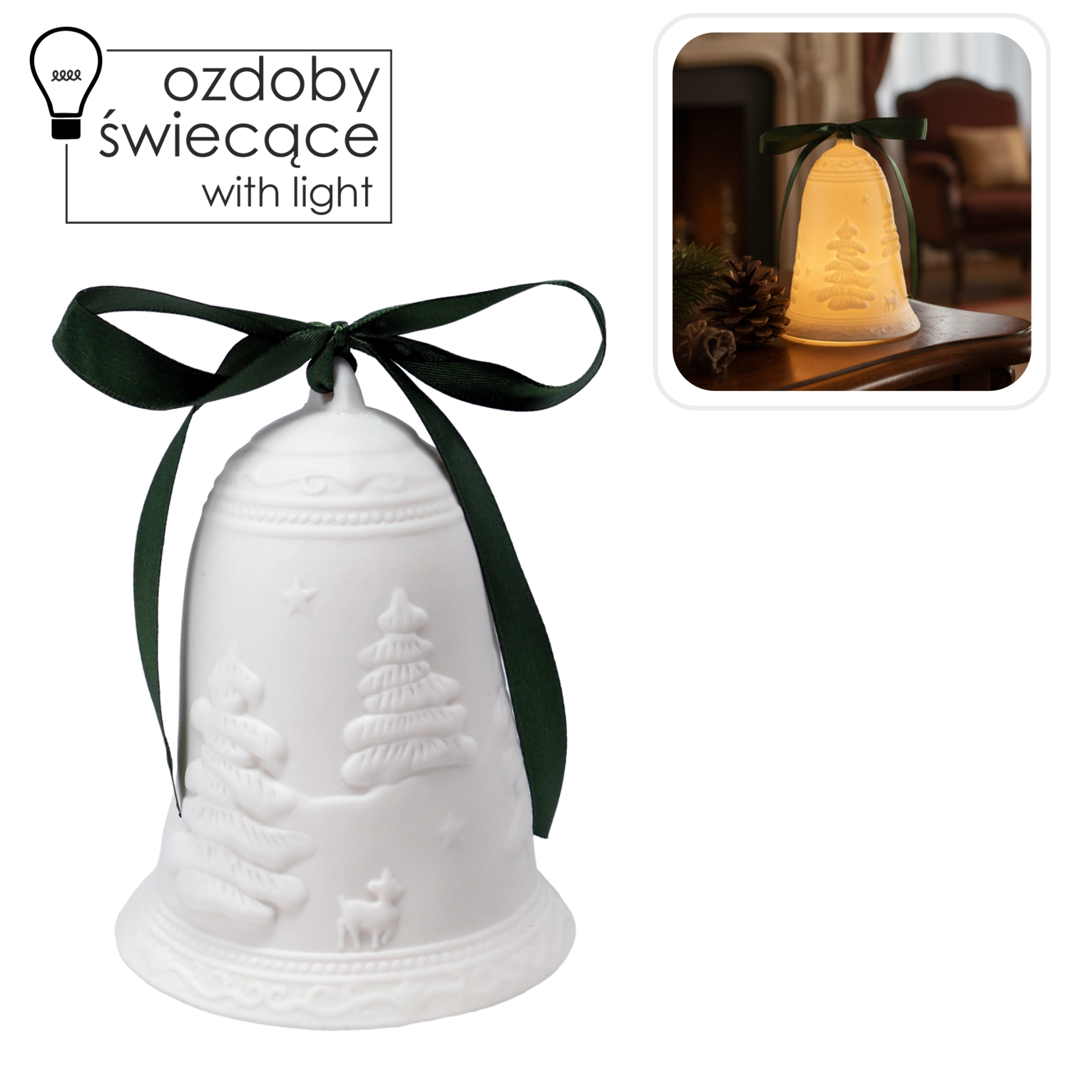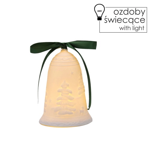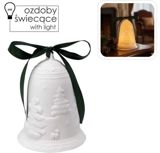 Vytvorte si doma tú pravú sviatočnú náladu s keramickým zvončekom, ktorý po rozsvietení LED svetla jemne presvitá a dodáva interiéru teplý, upokojujúci nádych. Vďaka decentnému dizajnu s reliéfnymi vianočnými motívmi skvelo zapadne do moderných aj tradičných aranžmánov.