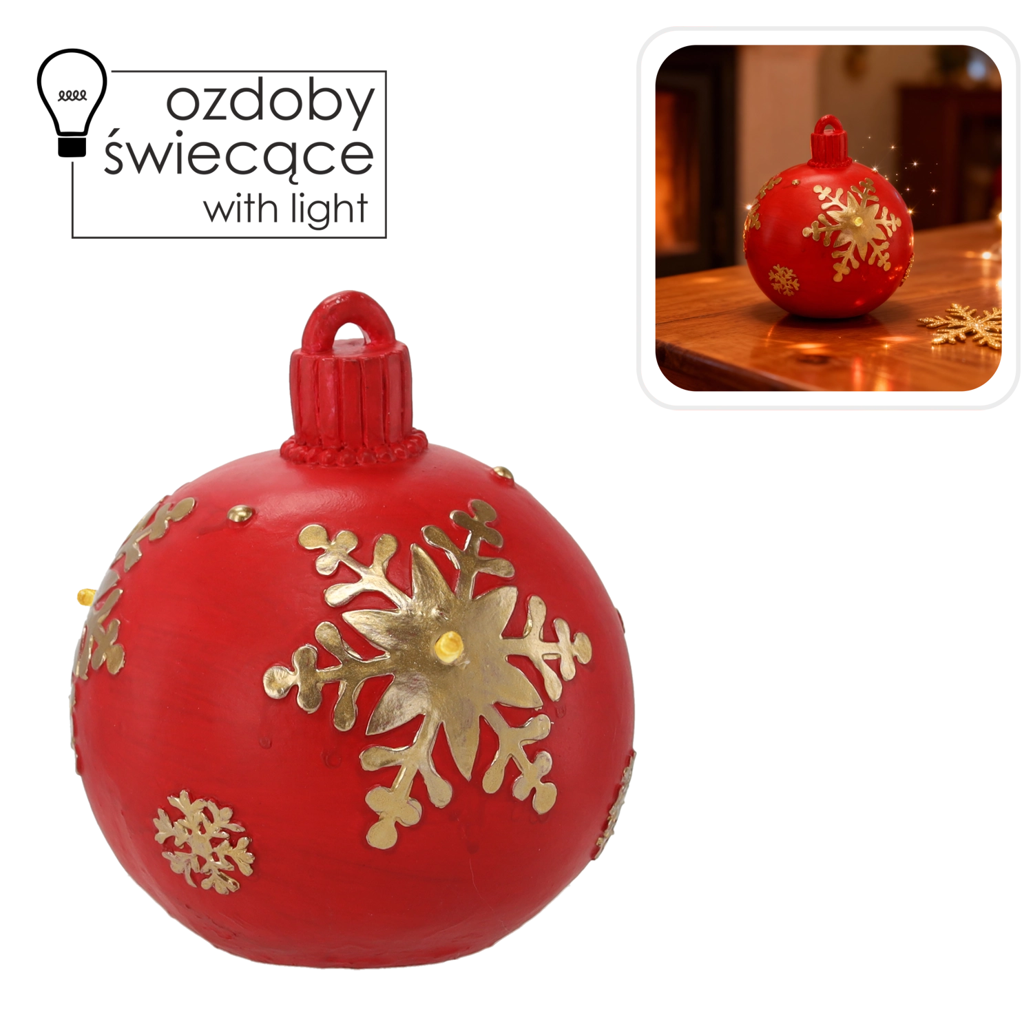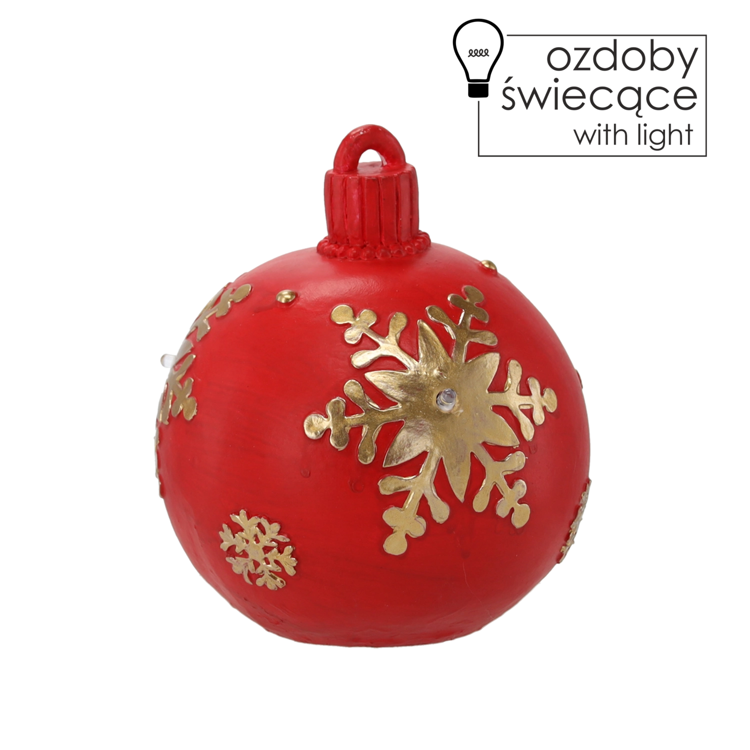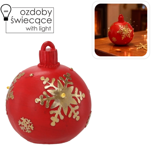 Táto elegantná červená guľa s integrovanými LED diódami vytvára čarovné, mäkké svetlo, ktoré zvýrazňuje zlaté detaily a podčiarkuje vianočnú pohodu. Vďaka kvalitnému spracovaniu a nadčasovému dizajnu sa ľahko kombinuje s ostatnými dekoráciami.