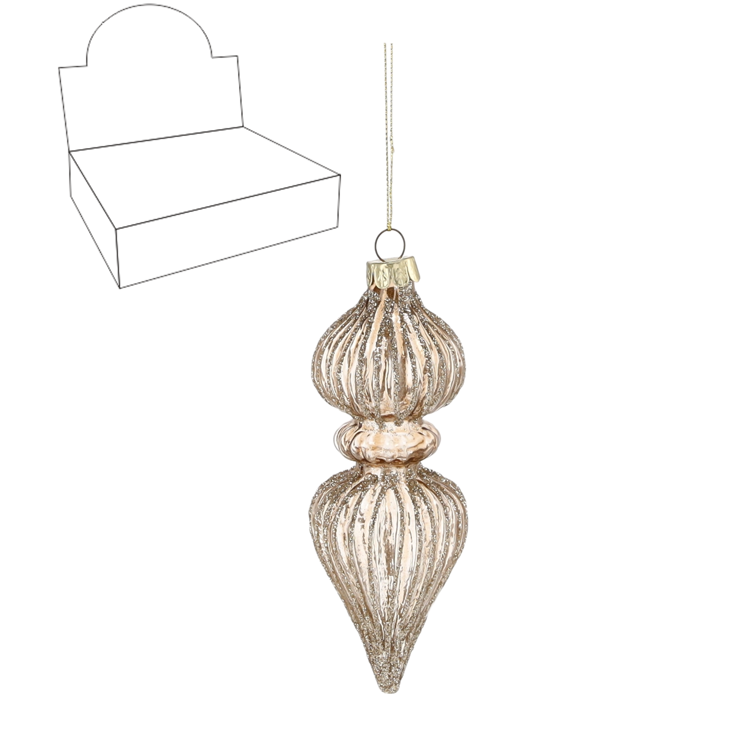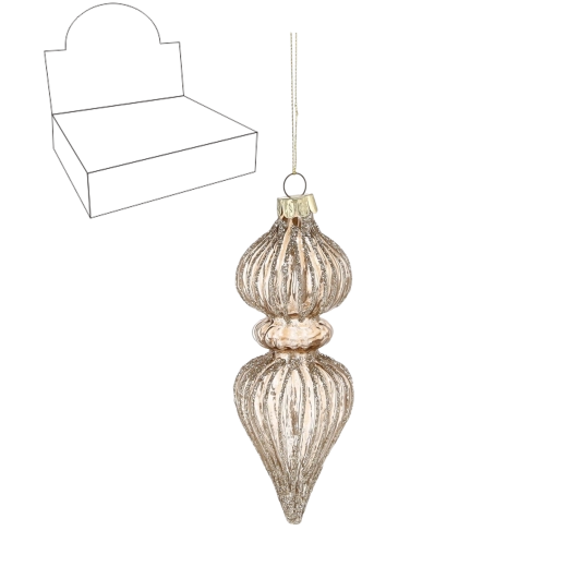 Dodejte vianočným sviatkom barokovú eleganciu s prémiovými sklenenými ozdobami inšpirovanými štýlom Baroque. Každý kus je z kvalitného skla so zlatými detailmi, ktoré nádherne odrážajú svetlo a vytvárajú luxusný vzhľad na vašom stromčeku. Vďaka rozmerom 5 × 14,6 cm pôsobia výrazne a stanú sa stredobodom sviatočnej dekorácie.