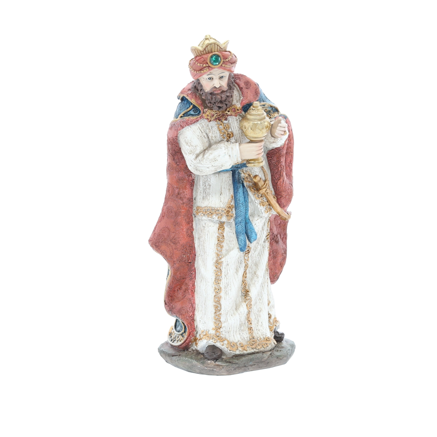 Tento kompletný set betlehemských postáv zahŕňa Svätú rodinu, troch kráľov, anjela, pastiera a zvieratá (vôl, ovca, osol a ťava) – všetko v zladených farbách a s bohatou textúrou. Polyresin zabezpečuje dlhú životnosť, stálosť farieb a elegantný vzhľad.