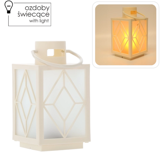 Elegantný vianočný lampáš v bielej farbe s integrovaným LED svetlom vytvorí útulnú atmosféru doma aj vonku. Kompaktné rozmery 11 × 11 × 20,5 cm a praktické uško na zavesenie umožňujú jednoduché umiestnenie na stôl, okenný parapet či zavesenie na háčik. Napájanie na 3× AAA batérie (nie sú súčasťou balenia) zabezpečuje bezpečnú prevádzku bez káblov a plameňa.