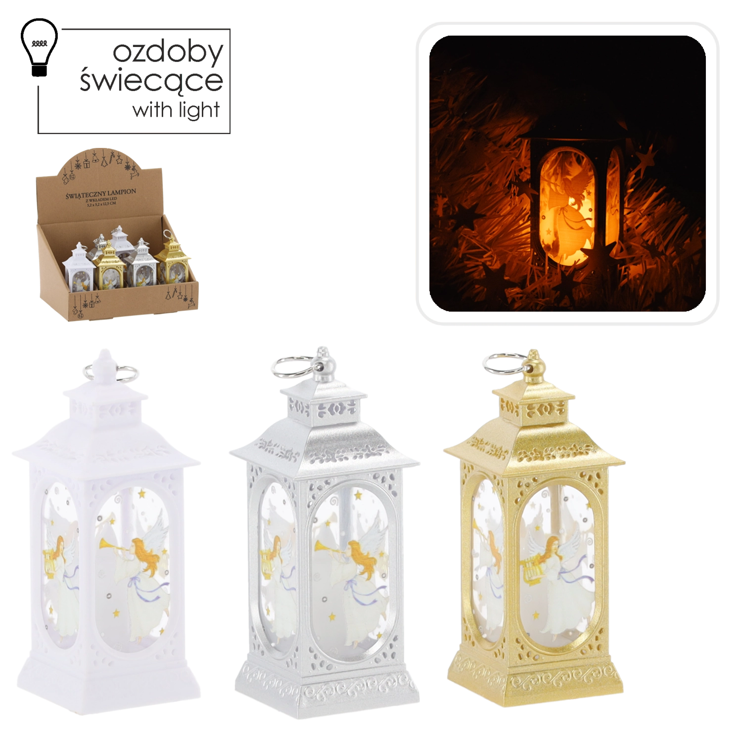 Elegantný vianočný lampáš s motívom anjela rozžiari váš domov teplým svetlom. Kompaktné rozmery a úsporná LED dióda zabezpečujú dlhú výdrž, zatiaľ čo decentné prevedenie v striebornej, zlatej alebo bielej farbe sa hodí do každého interiéru. Napájanie bezpečnou bateriou CR2032 bez potreby káblov.