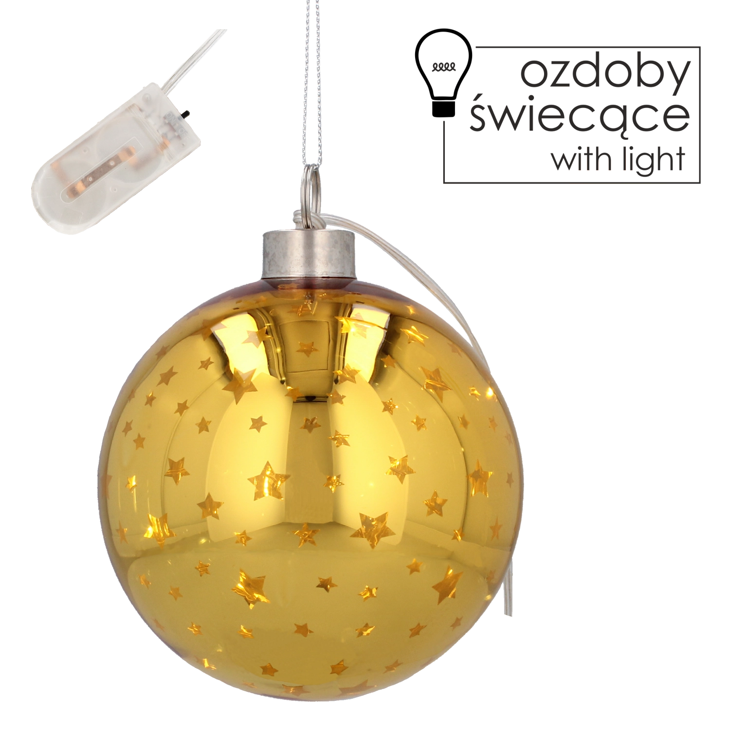 Vneste do svojho domova čaro Vianoc s kvalitnými sklenenými guľami so zlatými hviezdičkami a integrovaným LED osvetlením. Lesklý povrch s hviezdnym motívom odráža svetlo a umocní sviatočnú atmosféru v moderných aj klasických interiéroch.