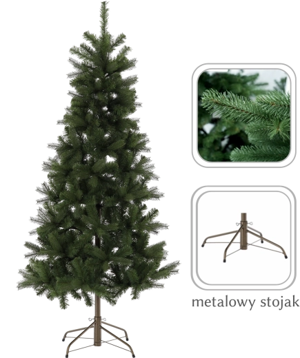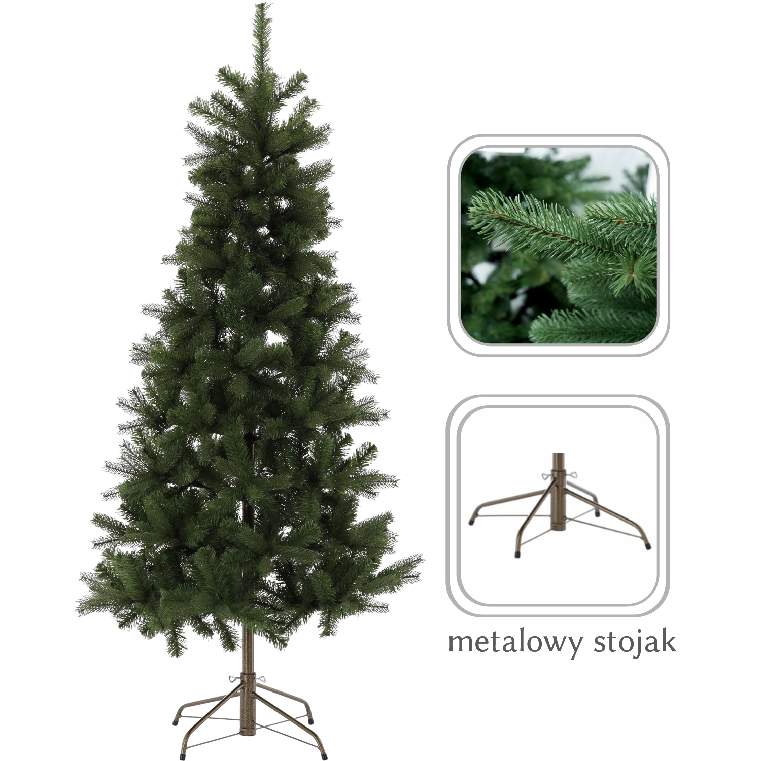 Elegantný umelý vianočný stromček vysoký 210 cm predstavuje nadčasovú dekoráciu s hustými vetvami z PVC a stabilným kovovým stojanom. Vďaka sýtozelenému odtieňu pôsobí prirodzene, je odolný voči vyblednutiu a ponúka jednoduchú montáž aj demontáž. Užívajte si realistický vzhľad, dlhú životnosť a bezpečné státie aj pri bohatom zdobení.