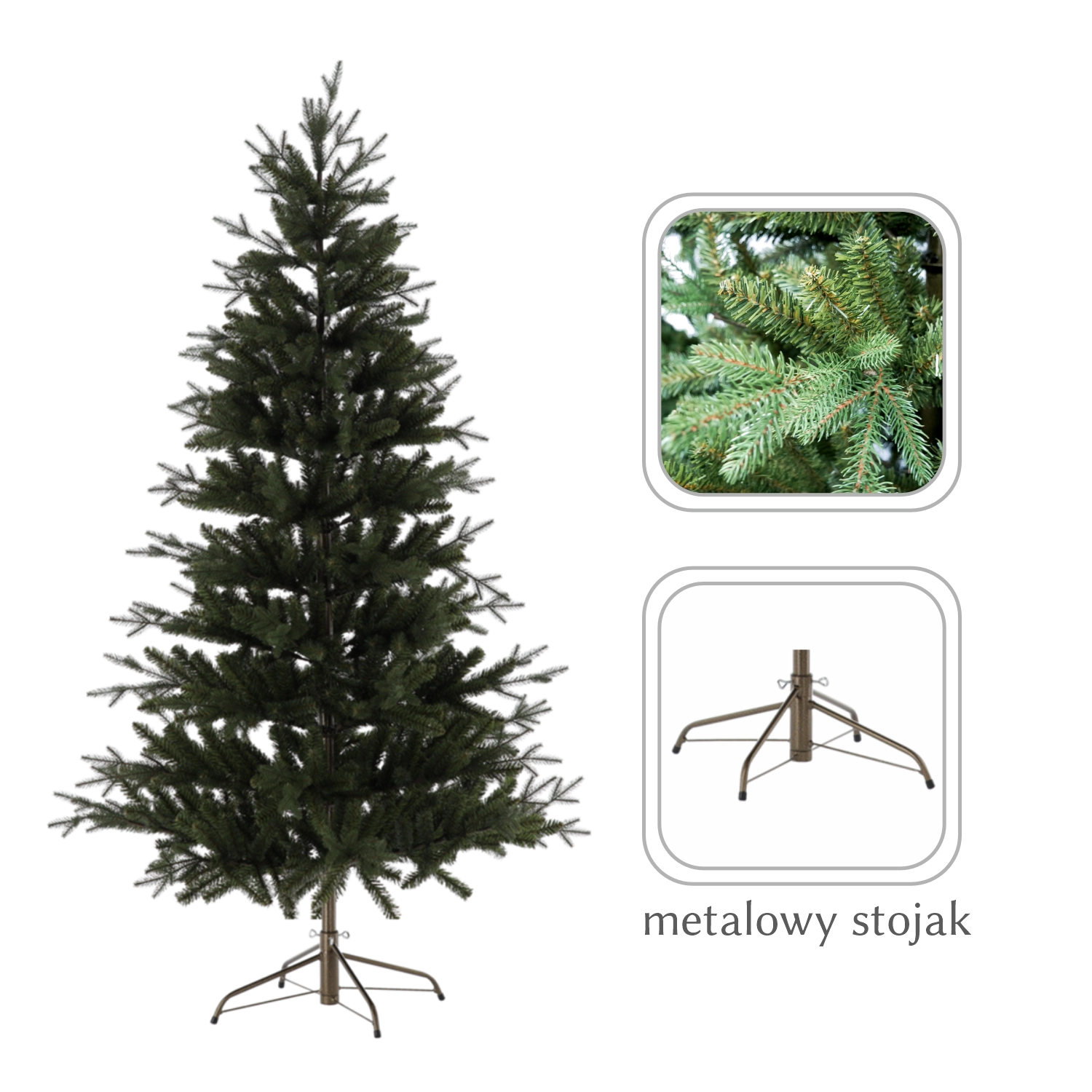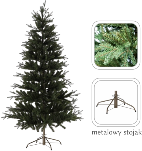 Vďaka kvalitnému PVC materiálu sú vetvy tvarovateľné, odolné a zachovávajú si sviežu zelenú farbu po mnoho sezón. Pevný kovový stojan zabezpečuje stabilitu aj pri bohatom zdobení a uľahčuje bezpečné umiestnenie stromčeka.