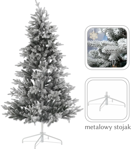 Syntetický vianočný stromček Agata s efektom zasneženia prináša autentický vzhľad zimnej prírody bez neporiadku po ihličí a bez nutnosti údržby. Zelené vetvy pokryté jemnou vrstvou "snehu" vytvárajú sviatočnú atmosféru v každom interiéri – od domácností až po kancelárie a komerčné priestory.