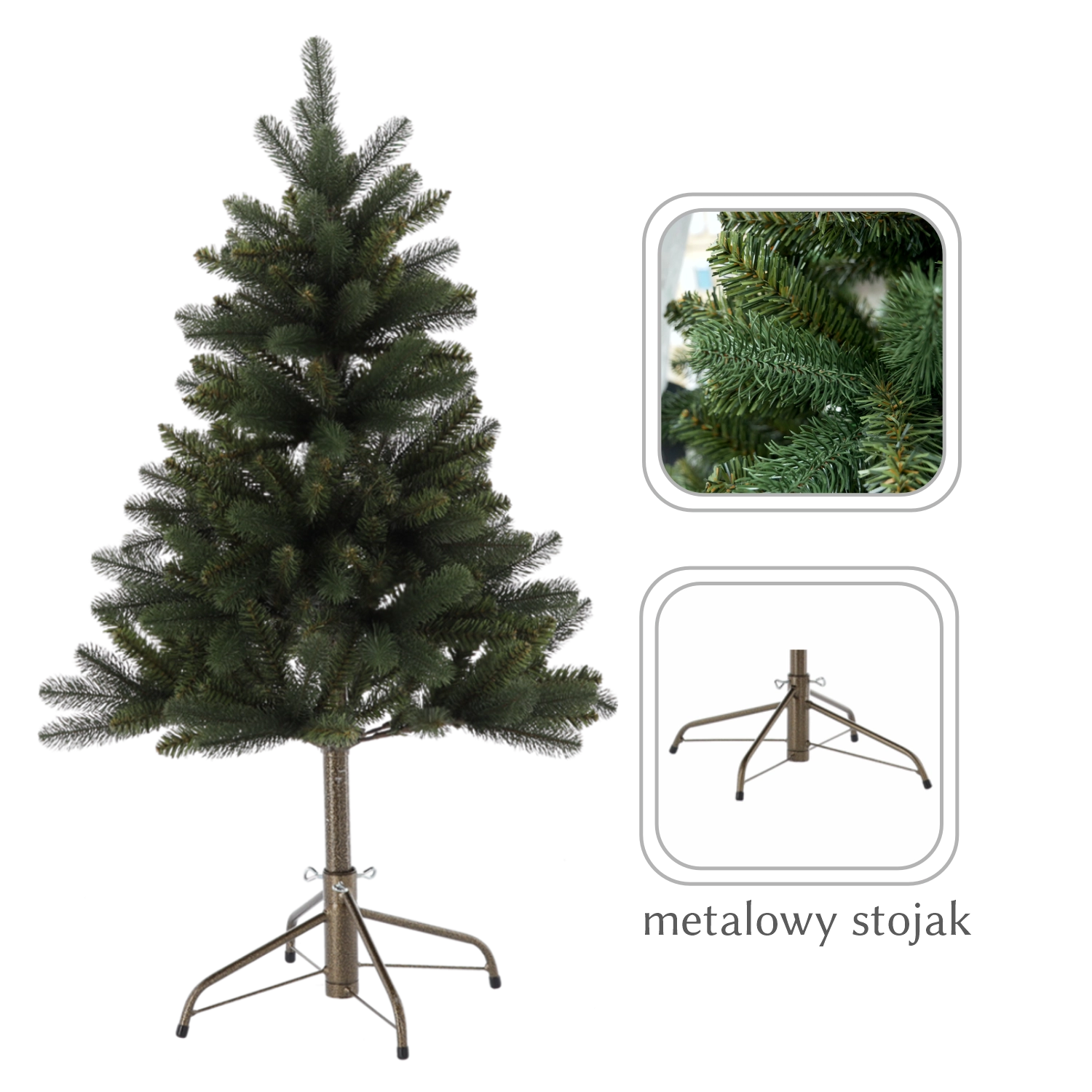 Bezpečnosť je na prvom mieste: použité nehorľavé materiály a stabilný kovový stojan garantujú pokojné prežitie vianočných chvíľ. Šírka 105 cm ponúka dostatok priestoru pre ozdoby a svetelné reťaze, takže stromček vynikne v obývacej izbe aj v menšom byte.
