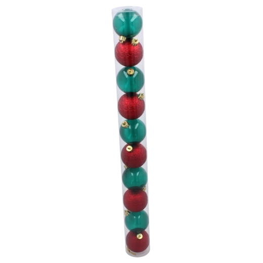 Táto štýlová súprava 10 gulí je ideálna na zdobenie vianočného stromčeka, vencov, girland aj ďalších sviatočných aranžmánov. Harmonická kombinácia intenzívnej červenej a hlbokej zelenej vytvára teplú, slávnostnú atmosféru, ktorá poteší celú rodinu aj hostí.