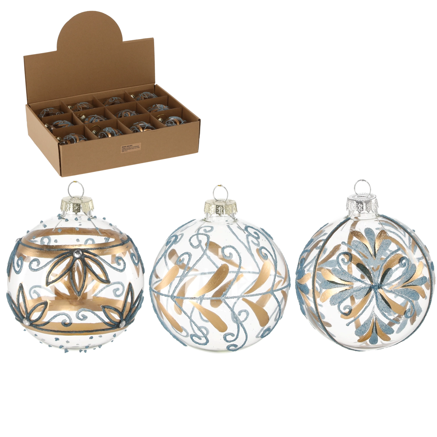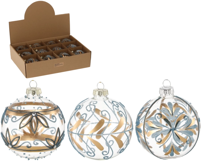 Vylaďte svoju vianočnú výzdobu do posledného detailu. Sklenené gule v modro‑zlatom prevedení pôsobia elegantne a slávnostne, pritom sa ľahko kombinujú s ďalšími dekoráciami. Vďaka precíznemu spracovaniu a detailnému zdobeniu je každá guľa malým umeleckým dielom, ktoré zvýrazní atmosféru Vianoc.