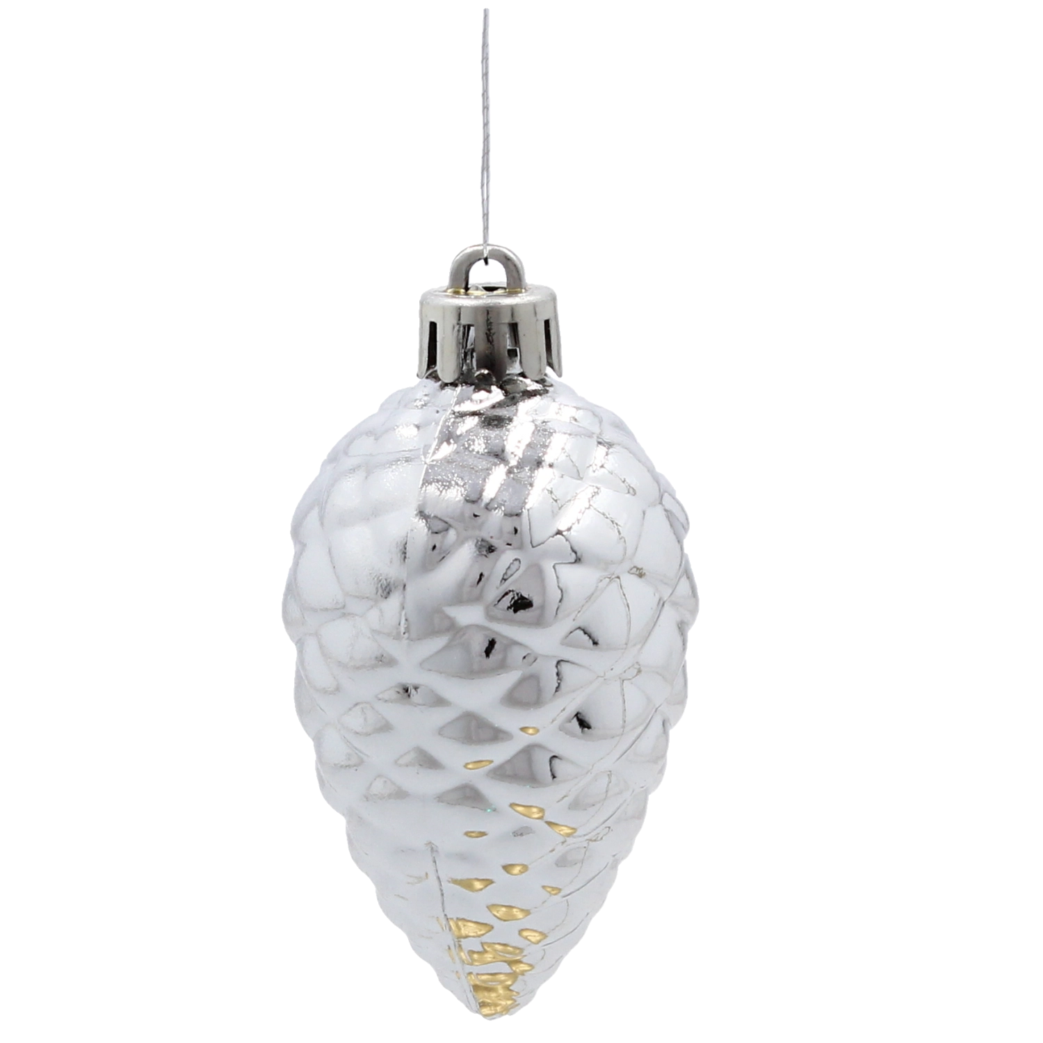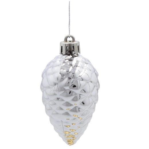Vybrané tvary ako guličky, vločky, hviezdy, šišky a cencúle umožňujú kreatívne aranžovanie. Strieborné lamety a korálkové reťaze dodajú výsledku súdržný, slávnostný vzhľad.