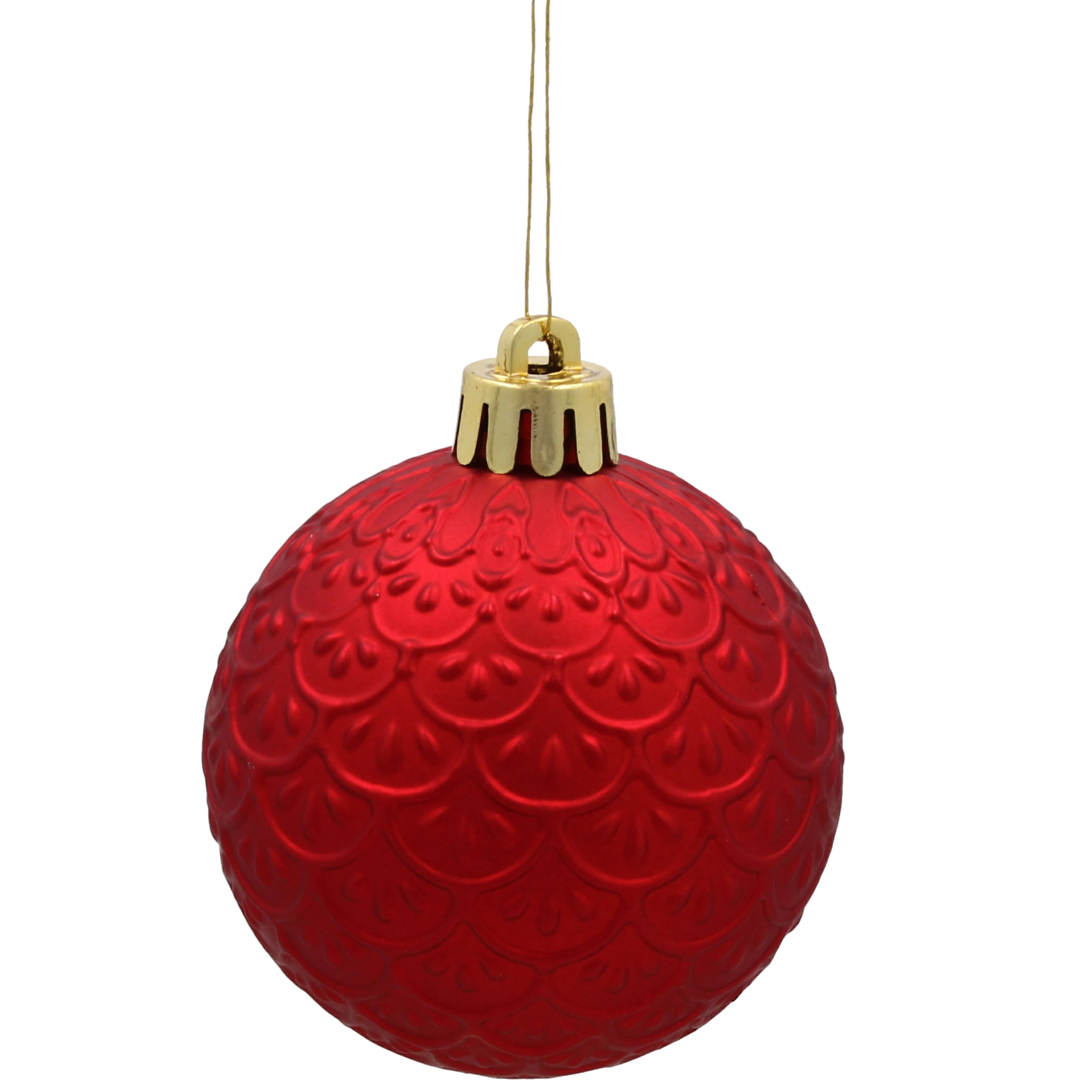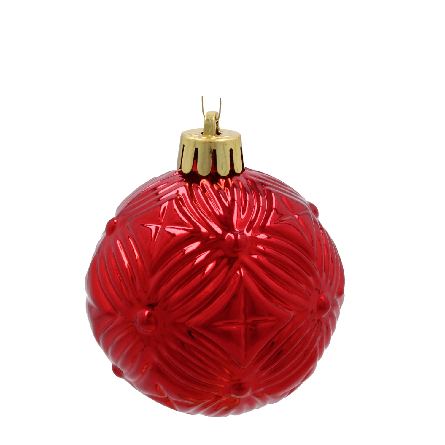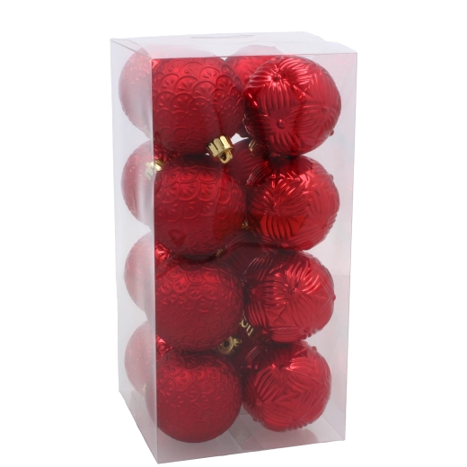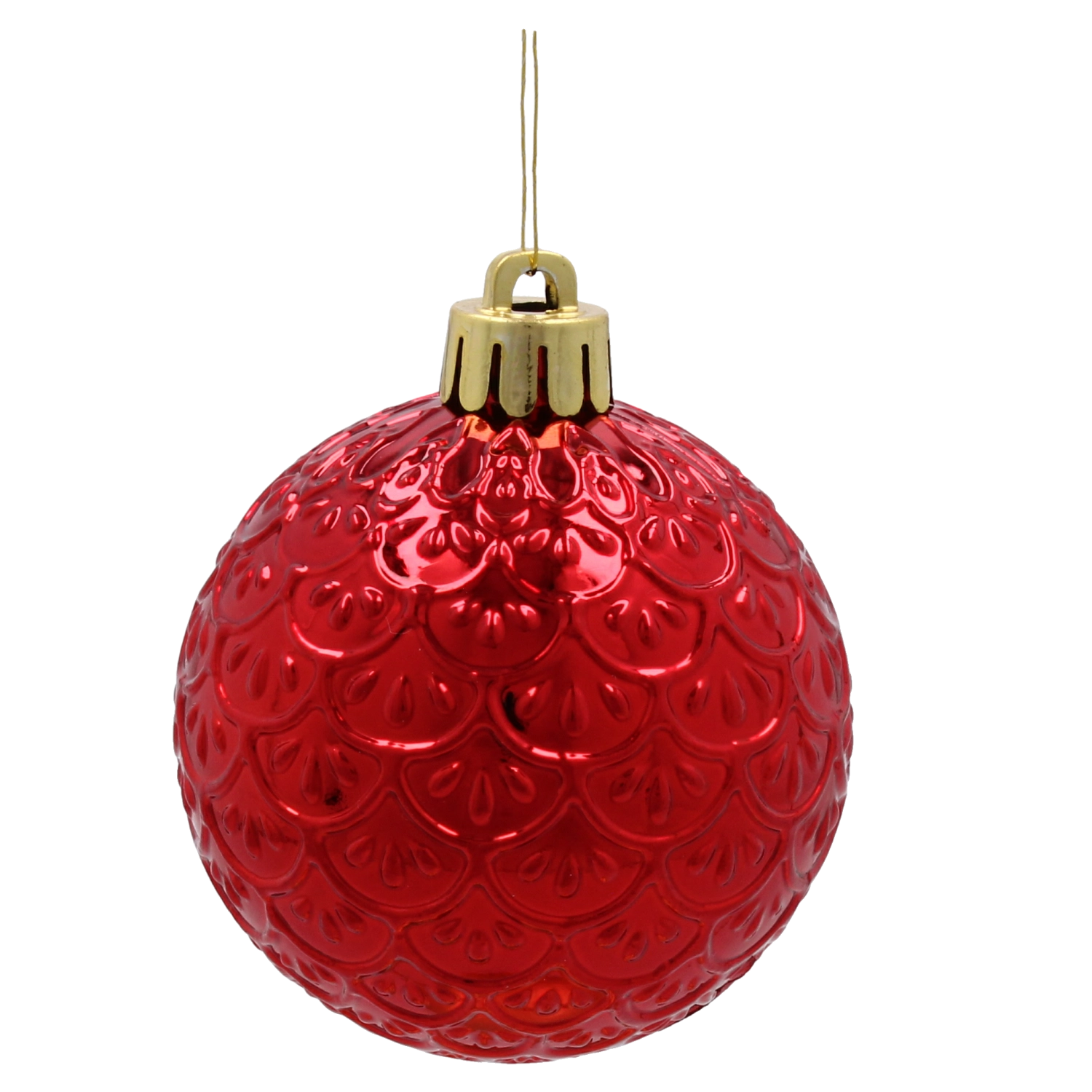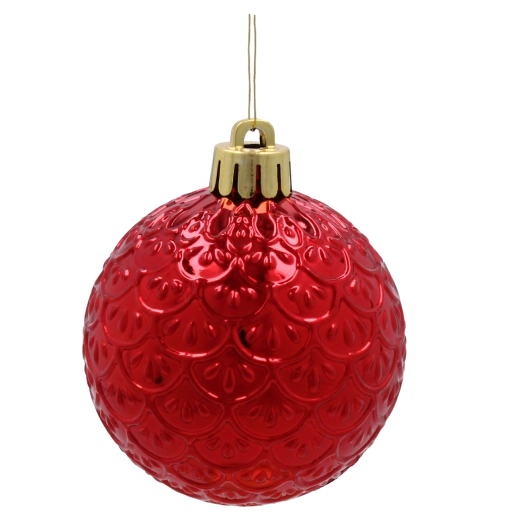 Táto univerzálna sada ozdôb v harmonických farbách červenej, zlatej a striebornej okamžite navodí sviatočnú atmosféru. Každá guľa je ľahká, má reliéfny dekor a je vybavená kovovou čiapočkou so šnúrkou na jednoduché zavesenie na vetvy, vence či girlandy. Odolný plast zaisťuje dlhú životnosť aj pri častej manipulácii.