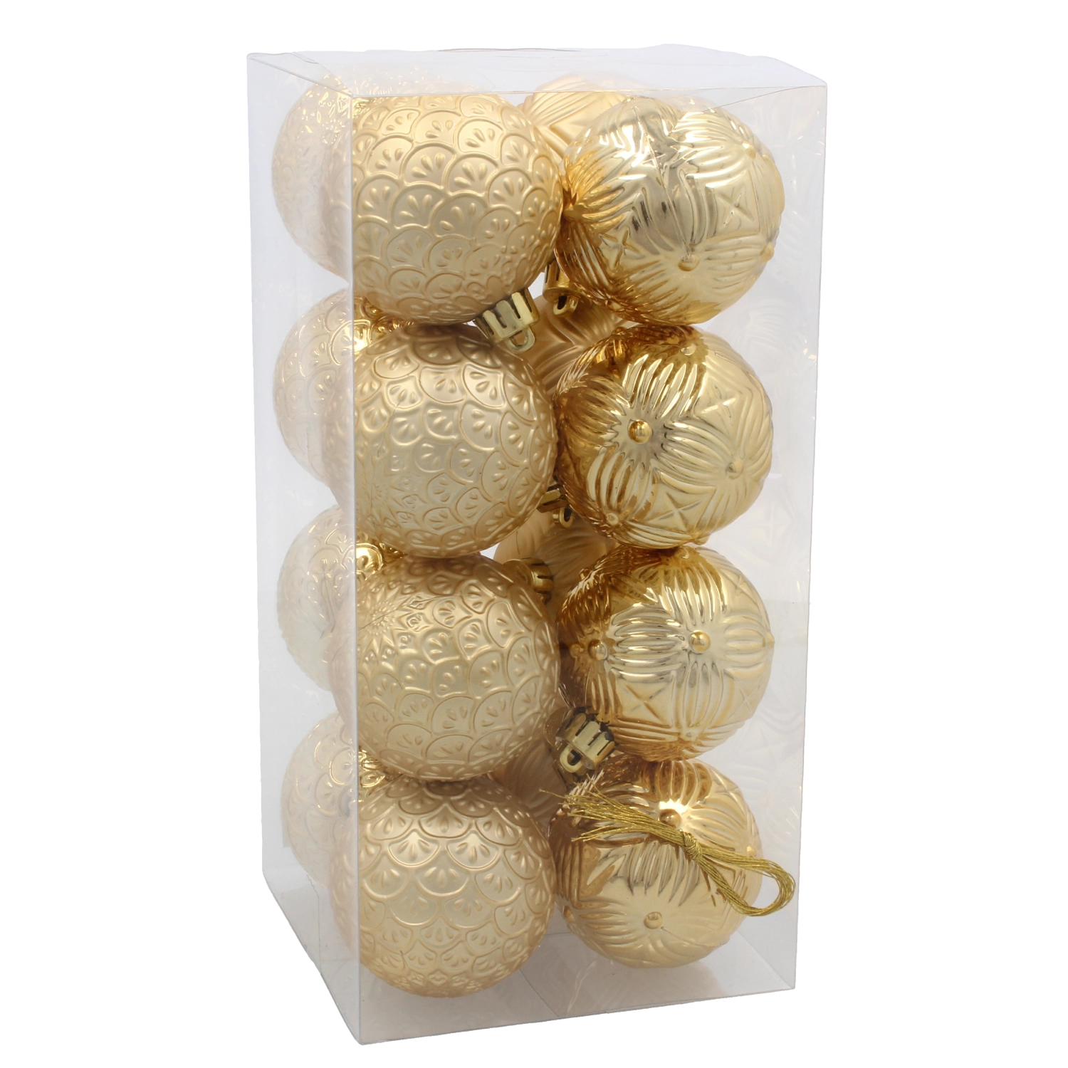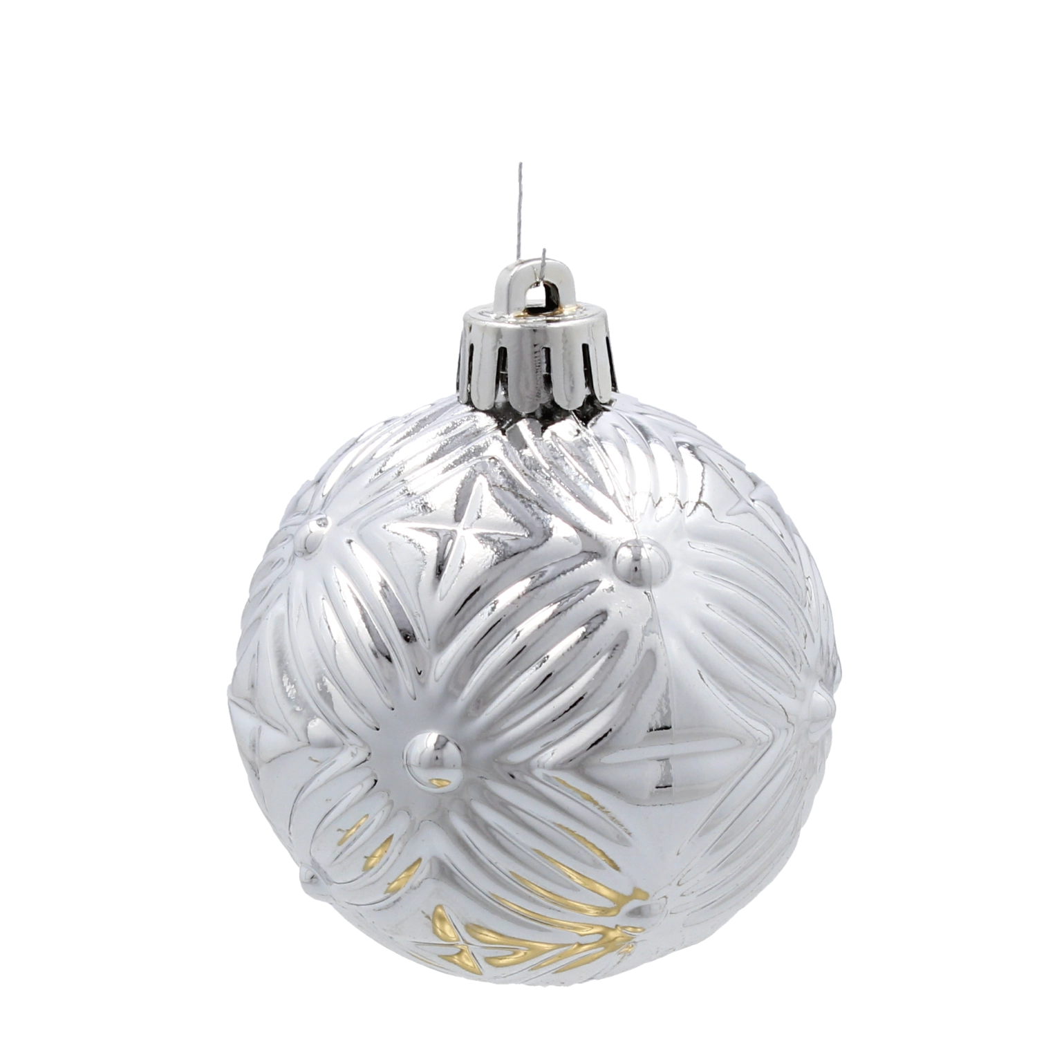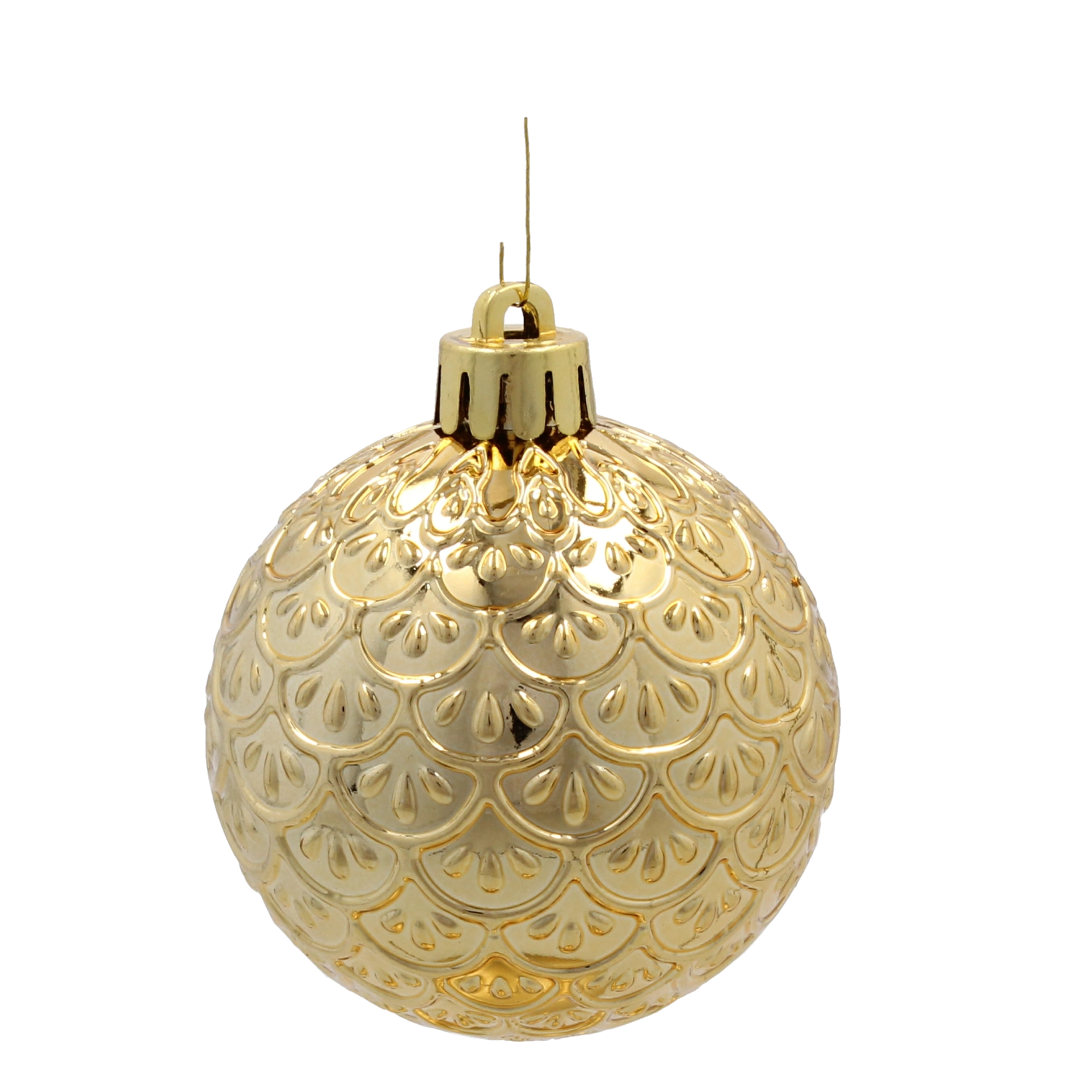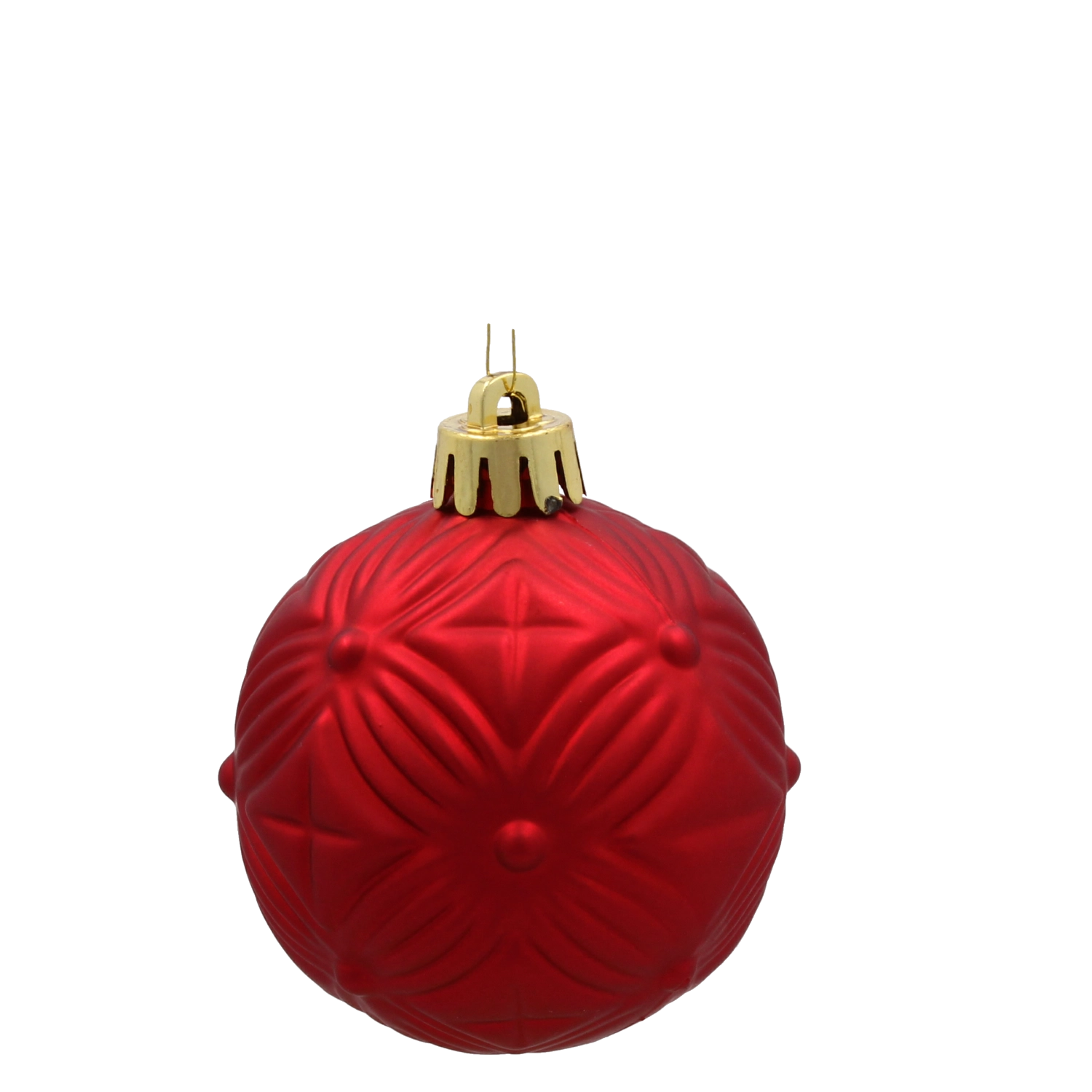 Táto univerzálna sada ozdôb v harmonických farbách červenej, zlatej a striebornej okamžite navodí sviatočnú atmosféru. Každá guľa je ľahká, má reliéfny dekor a je vybavená kovovou čiapočkou so šnúrkou na jednoduché zavesenie na vetvy, vence či girlandy. Odolný plast zaisťuje dlhú životnosť aj pri častej manipulácii.