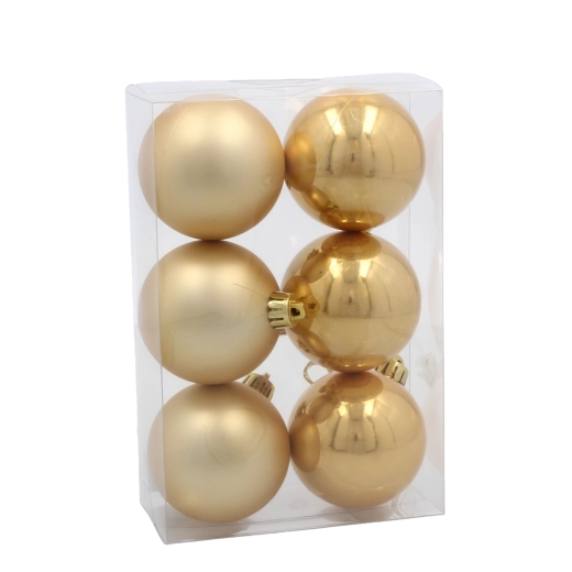 S touto univerzálnou sadou vianočných ozdôb vytvoríte dokonale zladenú a reprezentatívnu výzdobu. Šesť gulí s priemerom 6 cm v nadčasových farbách spríjemní každý interiér a vďaka odolnému, nerozbitnému prevedeniu sa nemusíte báť manipulácie ani uskladnenia.