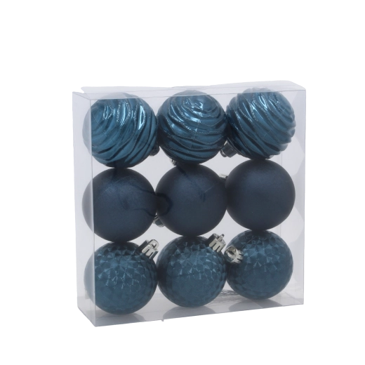 Doprajte si sviatočnú atmosféru s nádychom luxusu. Táto súprava obsahuje deväť precízne spracovaných gúľ v harmonickej kombinácii tmavomodrej a béžovo zlatej. Rôzne povrchové úpravy – od matných po štruktúrované a lesklé – vytvárajú na stromčeku pútavý kontrast a krásne odrážajú svetlá.