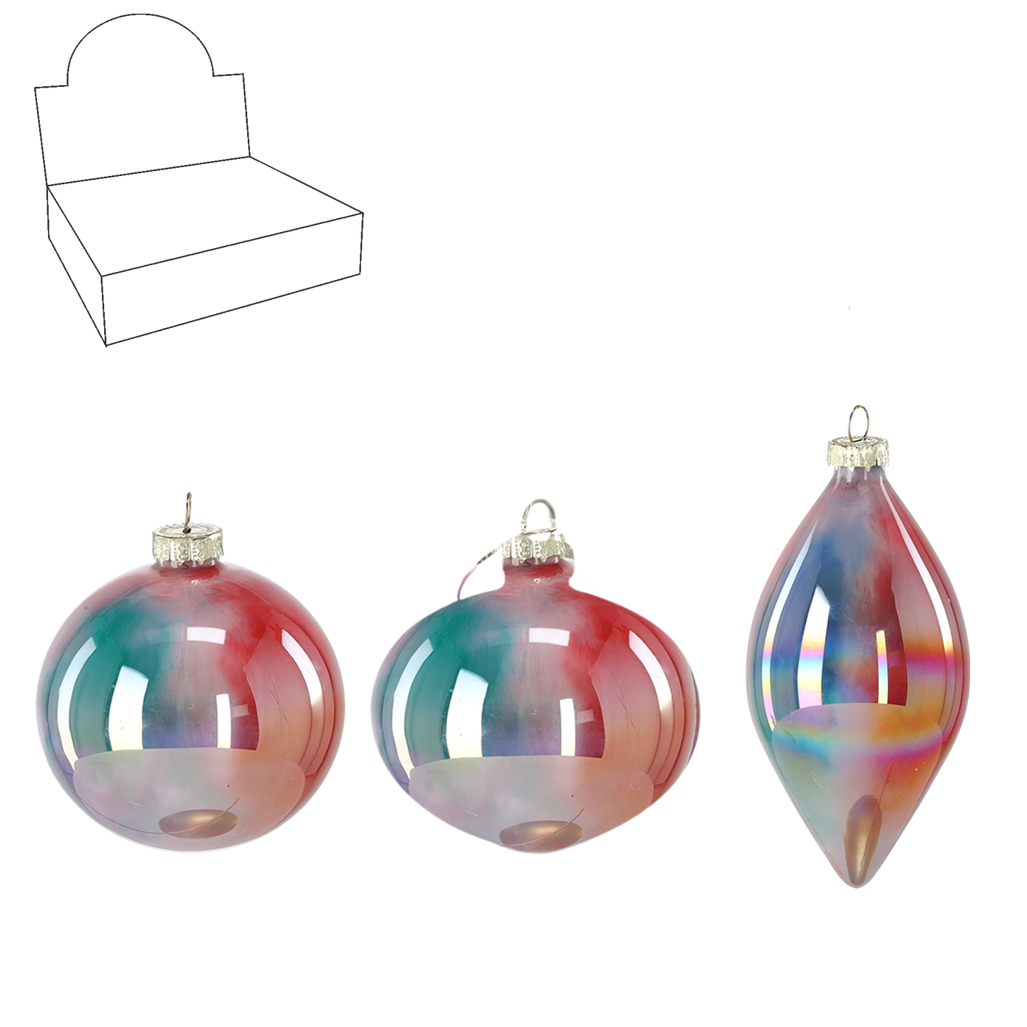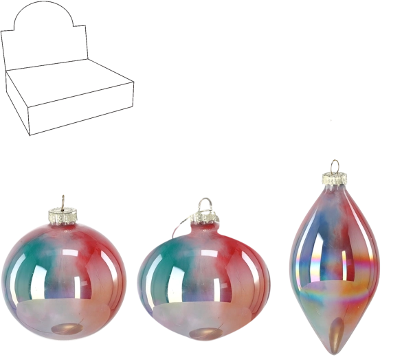 Vytvorte slávnostnú atmosféru so sklenenými vianočnými ozdobami s opalizujúcim nádychom, ktoré krásne odrážajú svetlo a zdôraznia čaro Vianoc. Kombinácia guľatých a podlhovastých tvarov sa ľahko ladí s ďalšou výzdobou a prináša elegantný, moderný vzhľad.