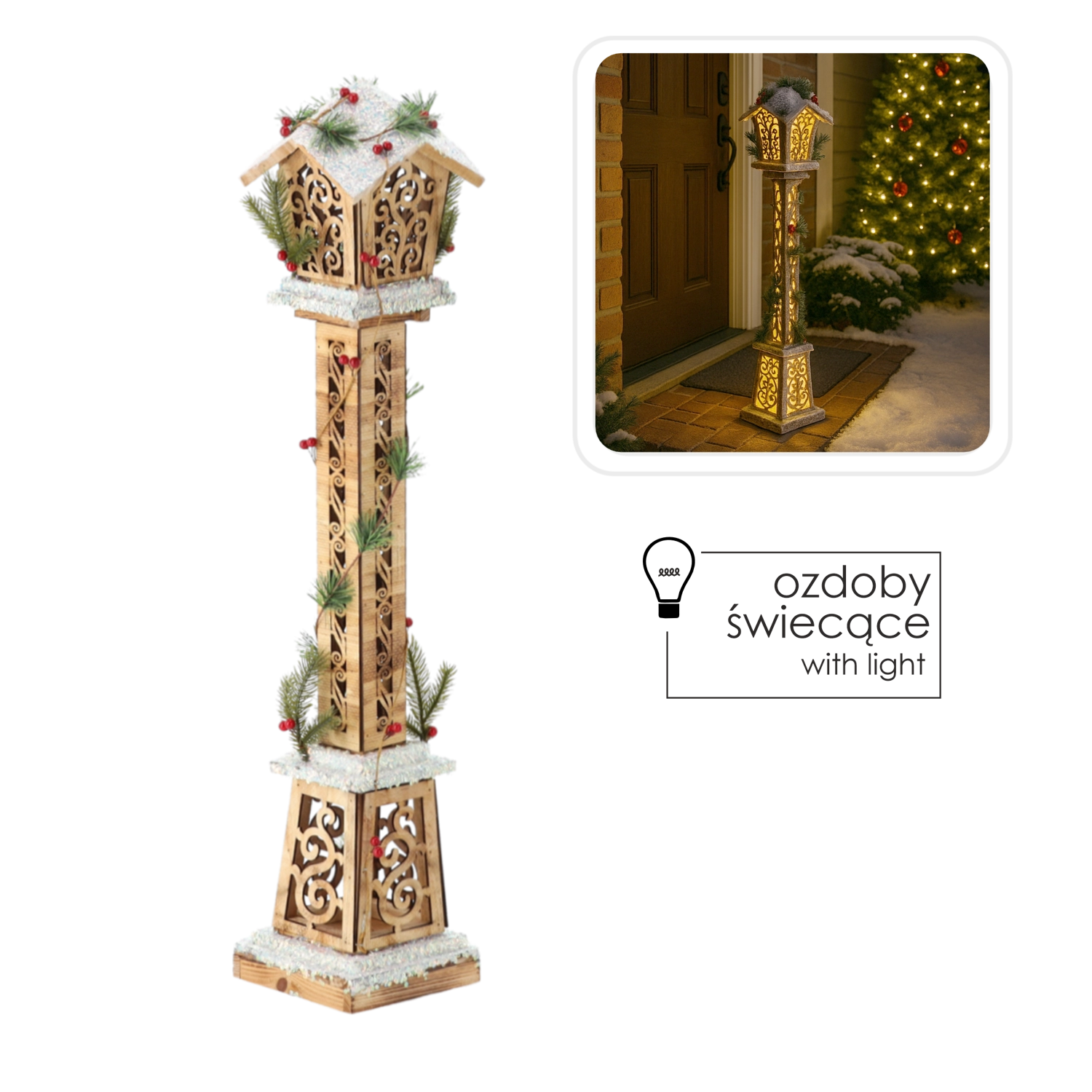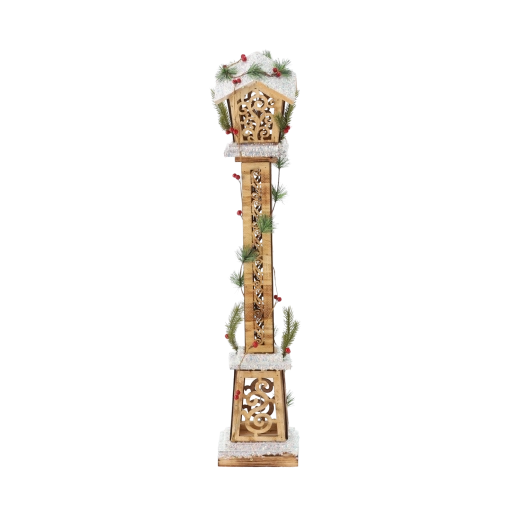 Táto štýlová lampa kombinuje prírodné drevo, jemné teplé LED svetlo a sviatočné detaily, ktoré okamžite dodajú vášmu priestoru šmrnc. Skvele sa hodí do obývacej izby, na chodbu aj na krytú terasu alebo verandu.