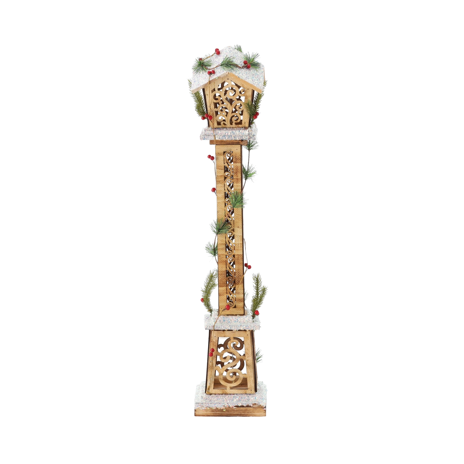 Kvalitné drevo dopĺňa umelé ihličie, červené bobule a snehový poprašok. Celok pôsobí autenticky a elegantne v každom vianočnom aranžmáne.