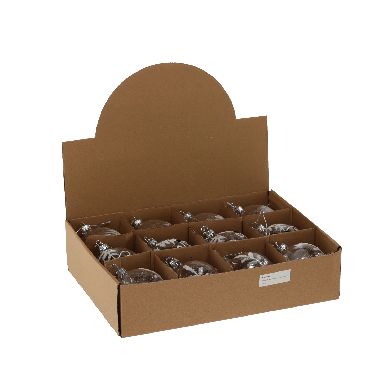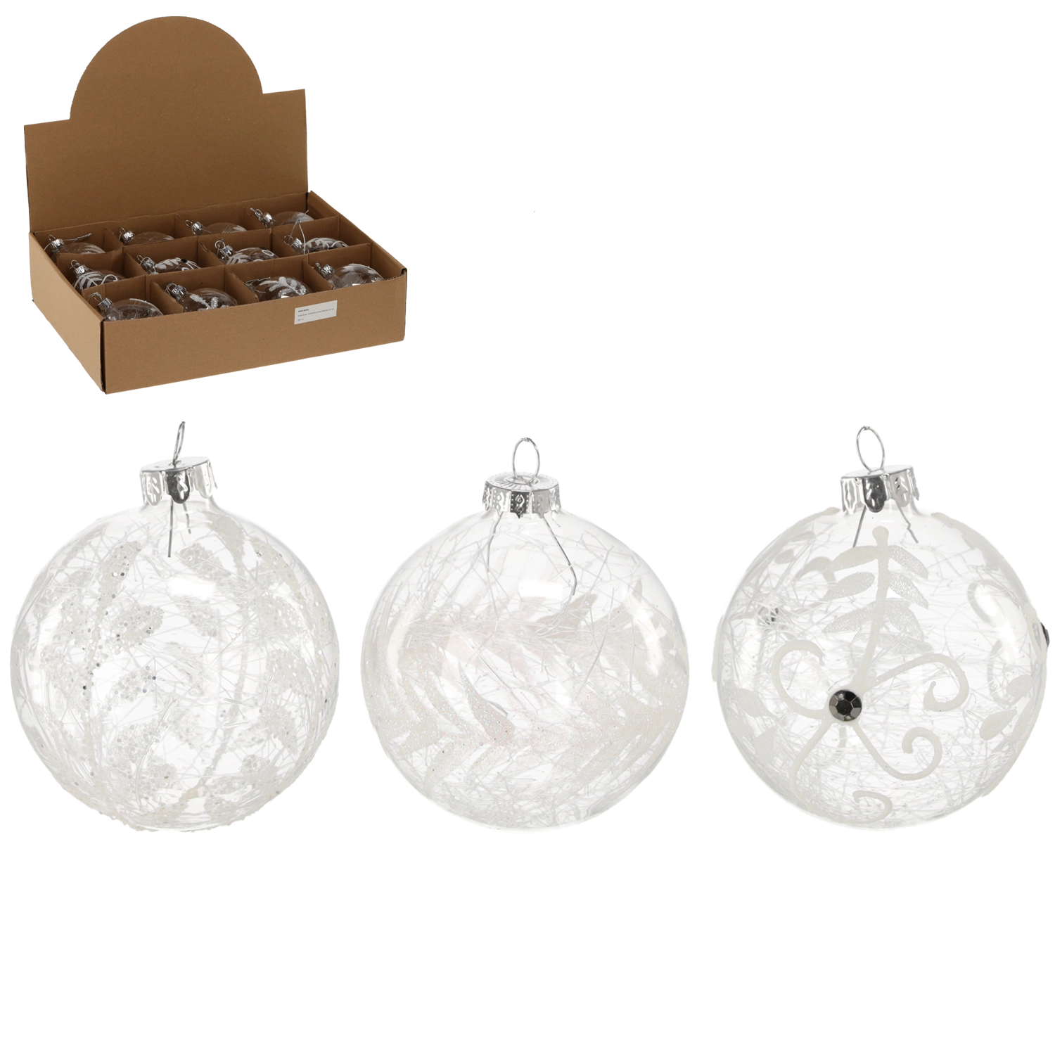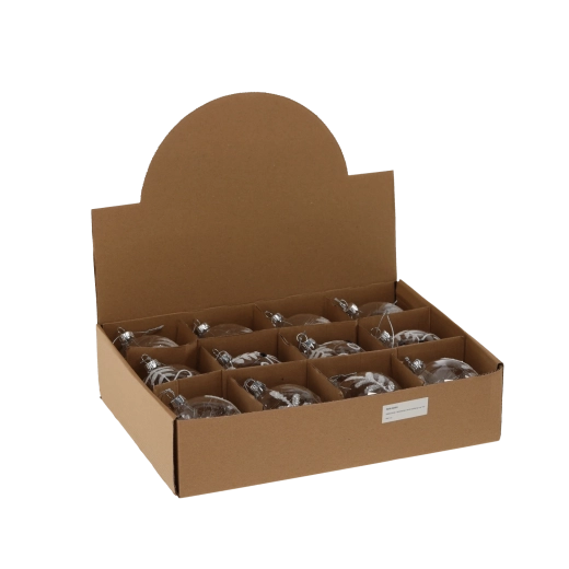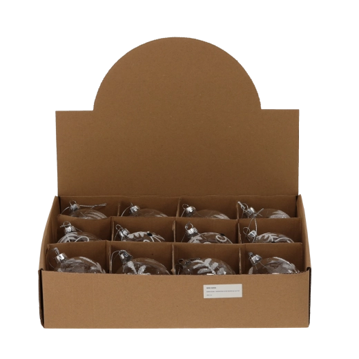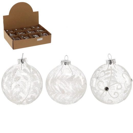 Táto sklenená guľa v čírom prevedení je univerzálnou ozdobou, ktorá skvelo vynikne na vianočnom stromčeku aj v ďalších sviatočných aranžmánoch. Transparentný dizajn s rozmanitými vzormi prepúšťa svetlo a vytvára jemné odlesky, ktoré podčiarknu čarovnú atmosféru Vianoc.