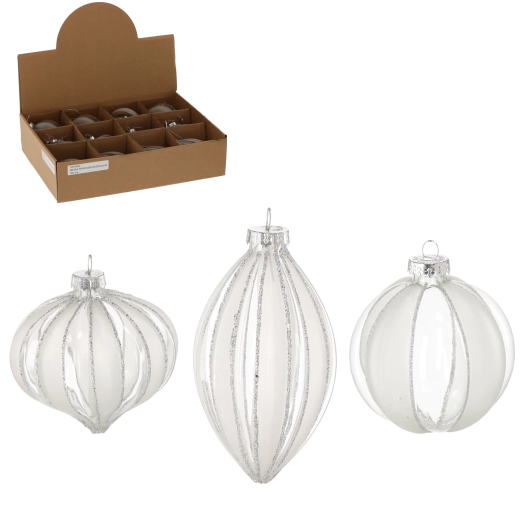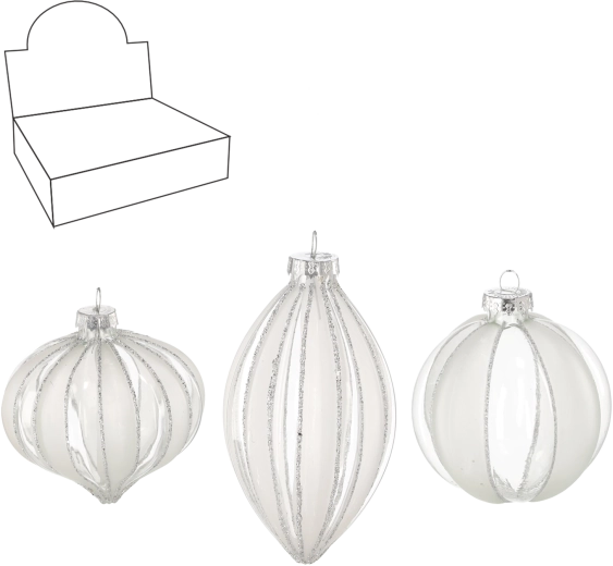 Elegantné sklenené ozdoby v priehľadnom prevedení rozžiaria každý stromček. V balení nájdete mix tvarov a dekorov, ktoré dodajú výzdobe jedinečný šmrnc. Vynikajú precíznym spracovaním a jemným zdobením pre skutočne sviatočnú atmosféru. Priehľadné sklo, mix vzorov a tvarov, ručne pôsobiaci dekor a nadčasový štýl sa skvele kombinuje s ostatnými ozdobami.