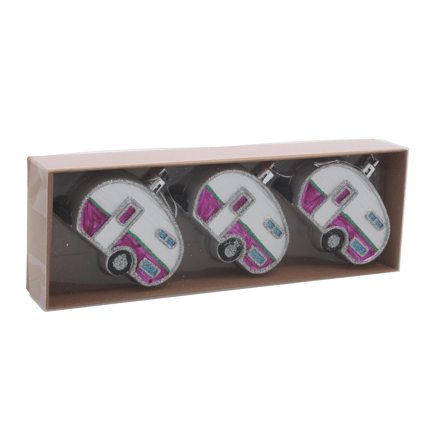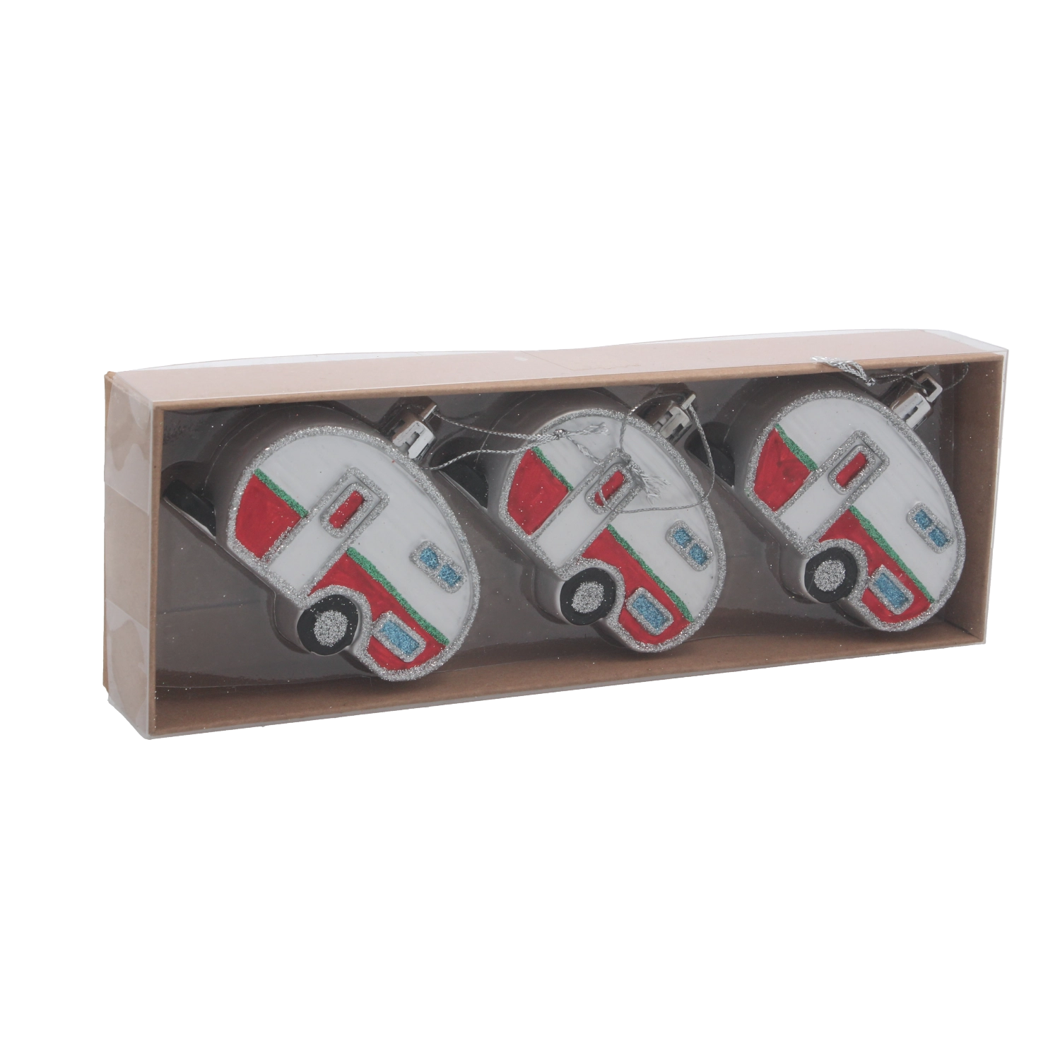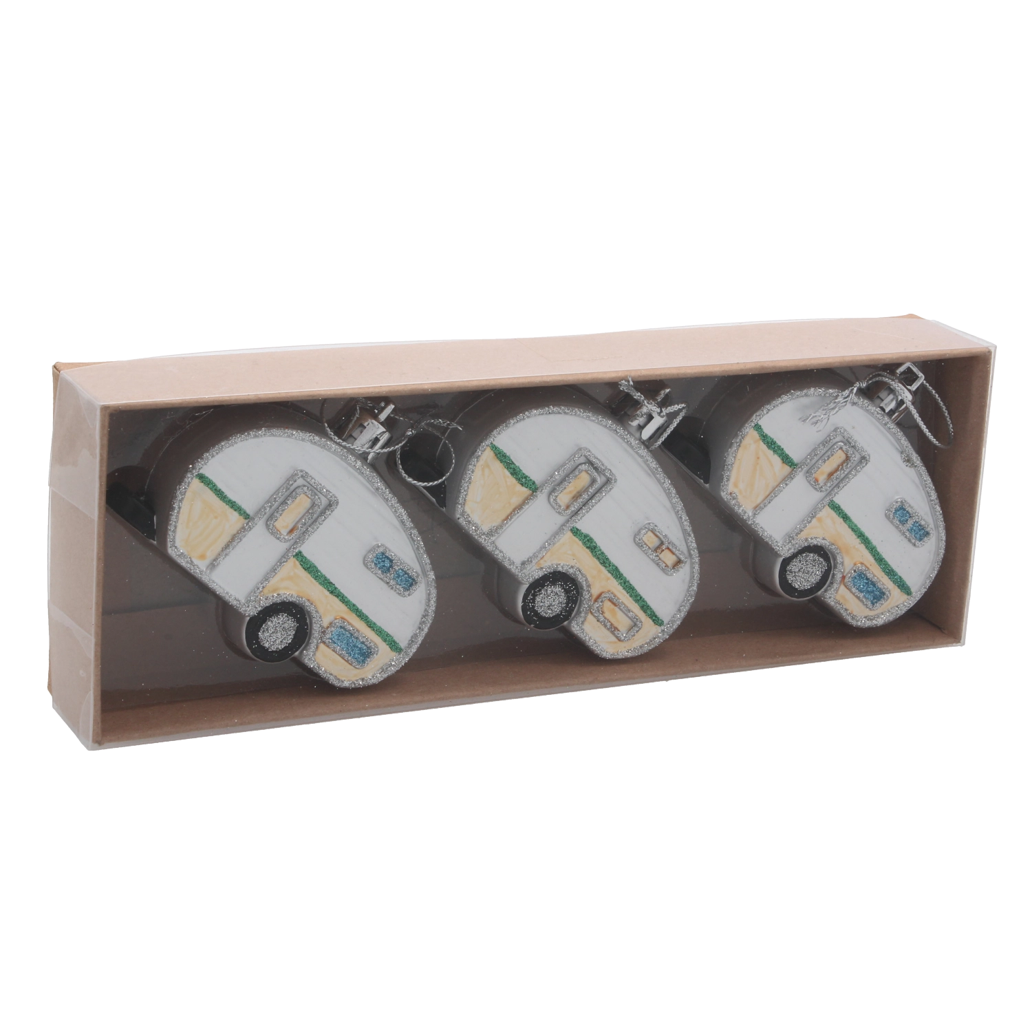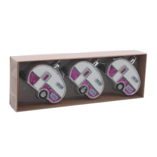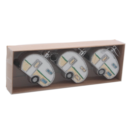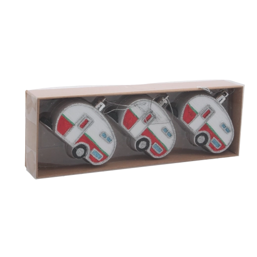 Vneste na svoj stromček cestovateľskú náladu so sadou troch vianočných ozdôb v tvare karavanu s priemerom 8 cm. Každý kúsok je precízne spracovaný s dôrazom na detaily, má ľahkú konštrukciu na jednoduché zavesenie a ponúka mix farieb pre dokonale zladenú sviatočnú výzdobu. Odolné materiály zaisťujú dlhú životnosť a atraktívny trblietavý efekt na každej vetve.