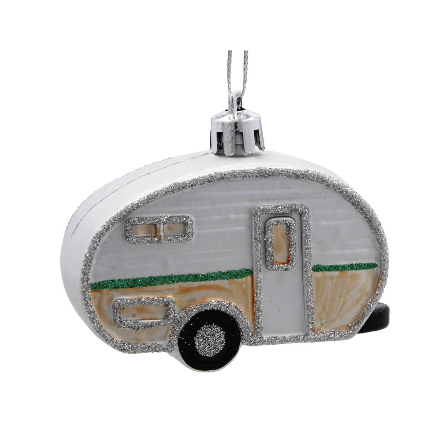 Jemné línie, okienka a kontúry karavanu s decentným trblietaním dodajú výzdobe pôsobivý, sviatočný vzhľad.