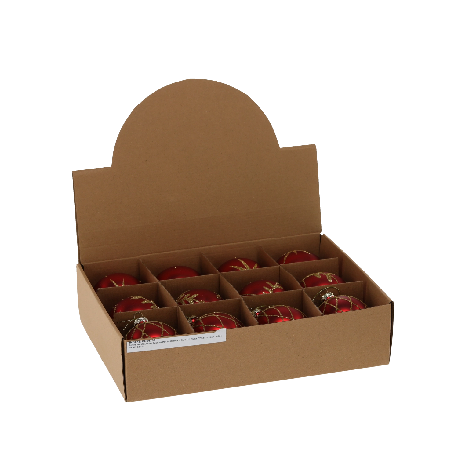 Doprajte svojmu stromčeku nadčasový šmrnc s touto sklenenou vianočnou guľou s priemerom 8 cm v matnej červenej. Balenie prináša mix elegantných vzorov, ktoré spolu ladia a vytvárajú harmonickú sviatočnú výzdobu. Kvalitné sklo a precízne spracovanie zabezpečujú dlhú životnosť a jemné odrazy svetla pre naozaj čarovnú atmosféru.