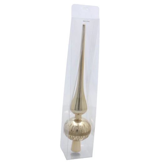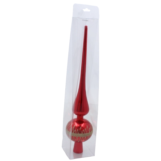 Dotvorte sviatočnú atmosféru štýlovou špičkou z kvalitného skla, ktorá korunuje každý vianočný stromček. Lesklý povrch nádherne odráža svetlo a dodáva dekorácii iskru a eleganciu. Vďaka precíznemu spracovaniu je špička odolná a pripravená robiť radosť mnoho sezón.