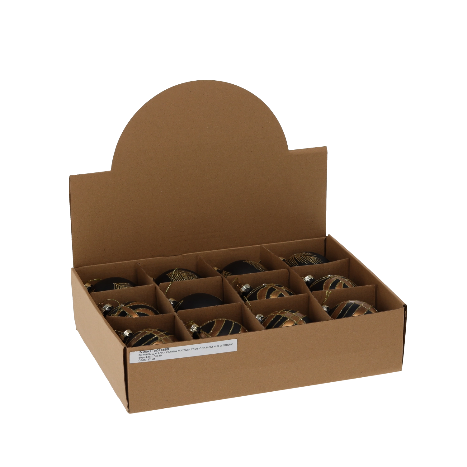 Elegantné sklenené vianočné gule s priemerom 8 cm v matnej čiernej farbe so zlatým zdobením dodajú vášmu stromčeku sofistikovaný a moderný vzhľad. Sada 12 kusov s rôznymi vzormi vytvára harmonický kontrast a prináša teplý, slávnostný lesk do každého interiéru.