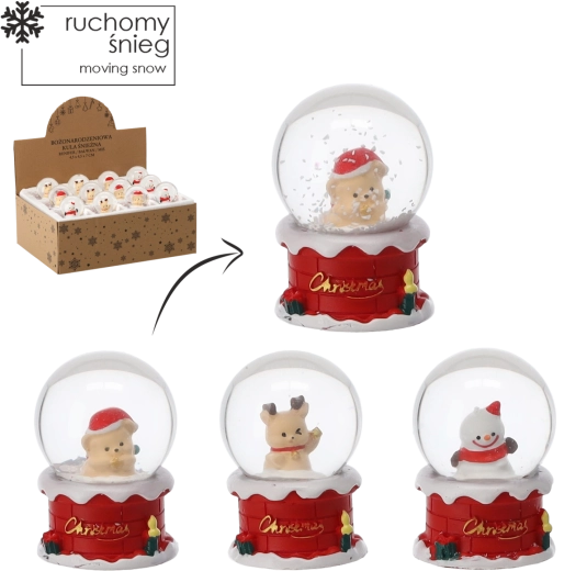 Vytvorte si doma útulnú sviatočnú náladu s malou, ale pôsobivou snehovou guľou. Sklenená dóma s čírym výhľadom ukrýva detailne spracovanú figúrku a po zatrasení vyčarí jemnú snehovú vánicu. Štýlový červený podstavec so „zimným“ zdobením sa hodí k modernému aj tradičnému vianočnému dekoru.