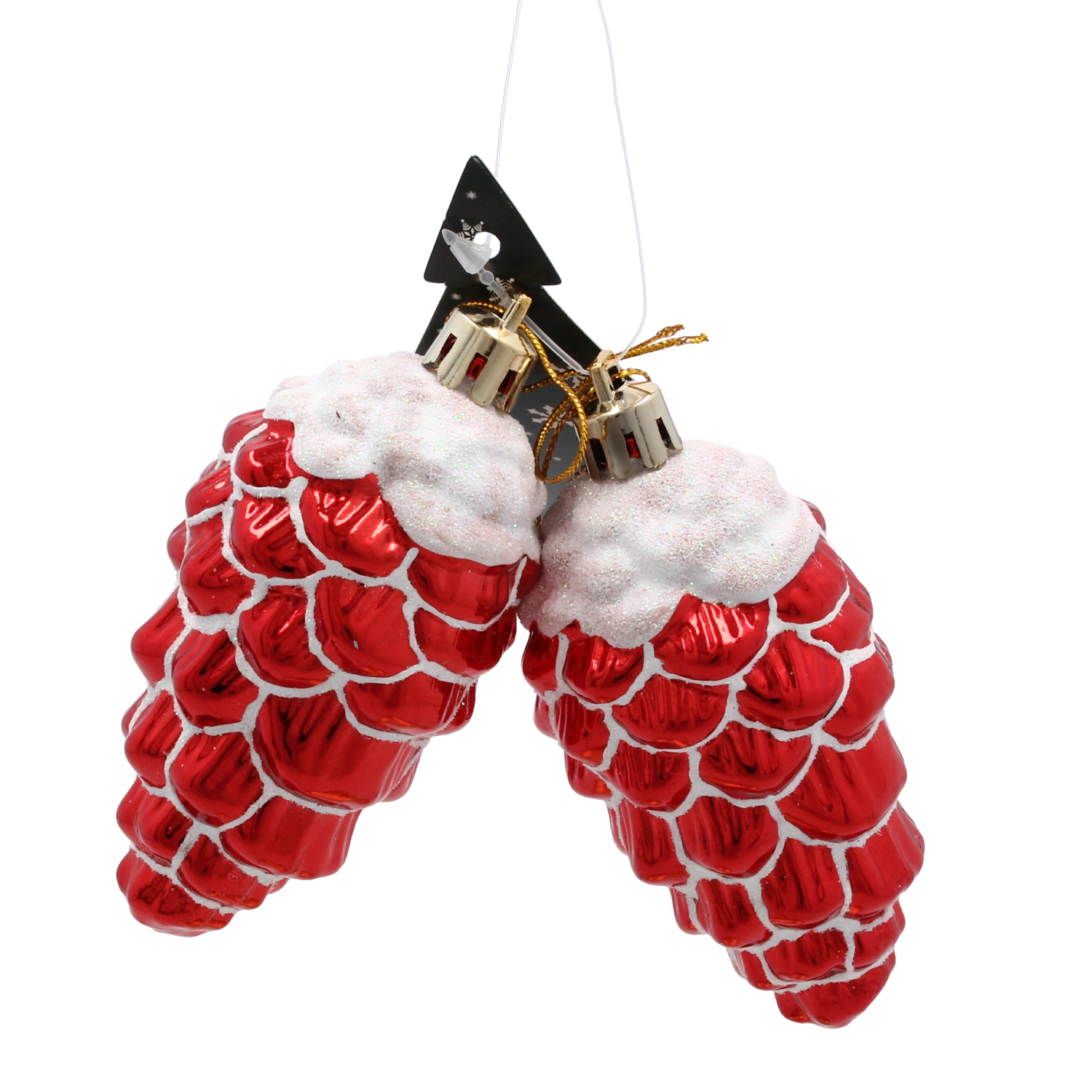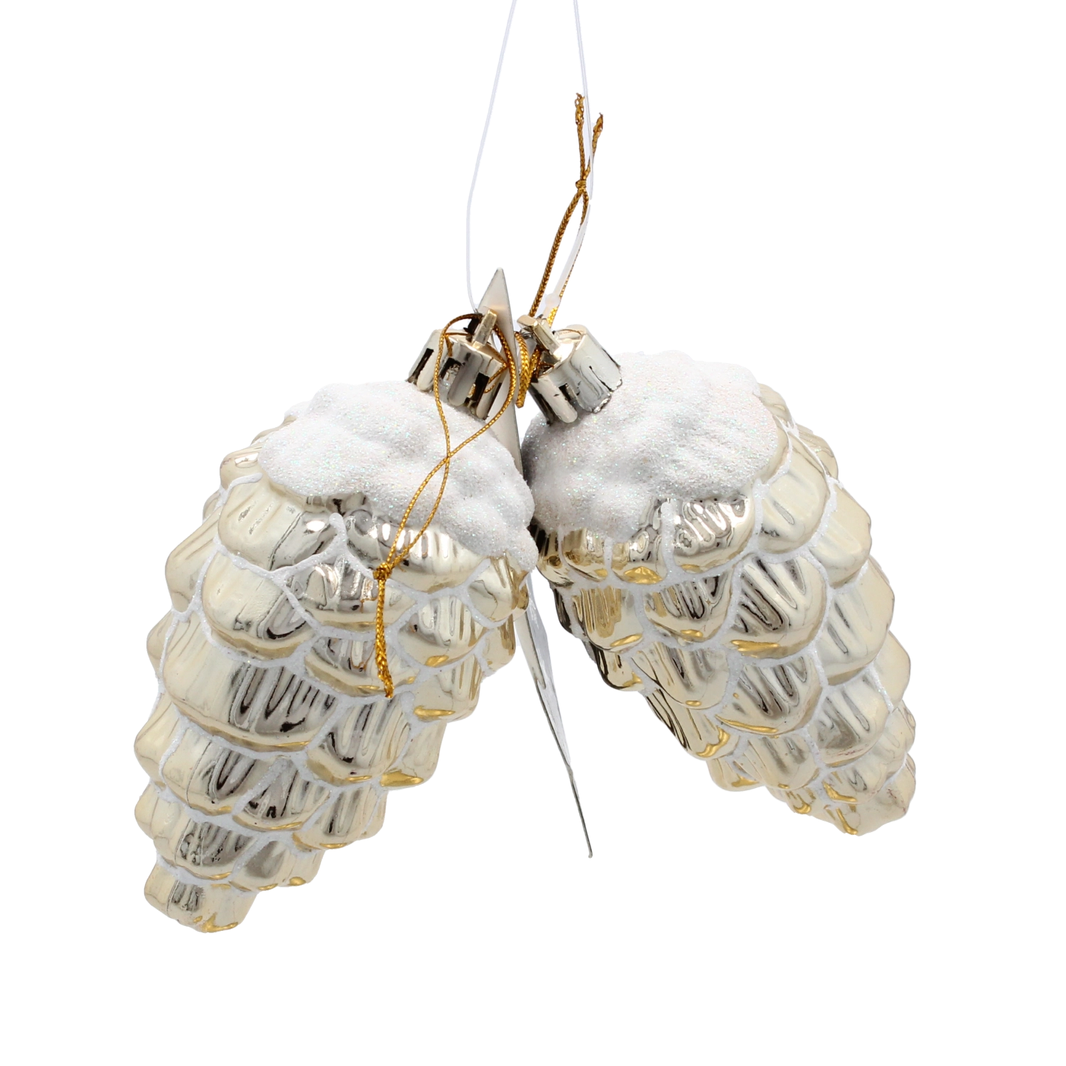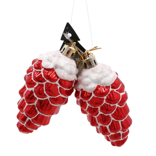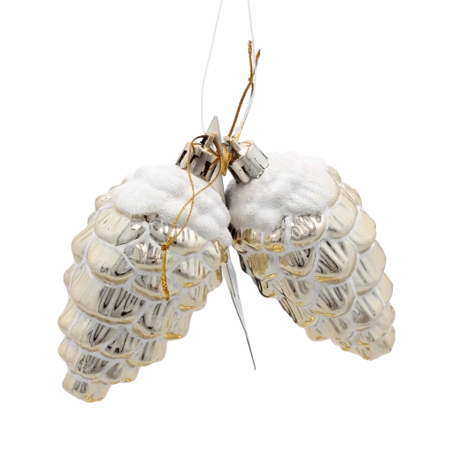 Táto štýlová sada 2 ozdôb v tvare šišiek skvelo doplní modernú aj tradičnú výzdobu. Lesklý povrch krásne odráža svetlo a zvýrazní ihličie, zatiaľ čo realistická textúra šupín dodá stromčeku prírodný vzhľad. Ozdoby sú z odolného plastu, takže sa hodia aj do domácností s deťmi či domácimi miláčikmi.