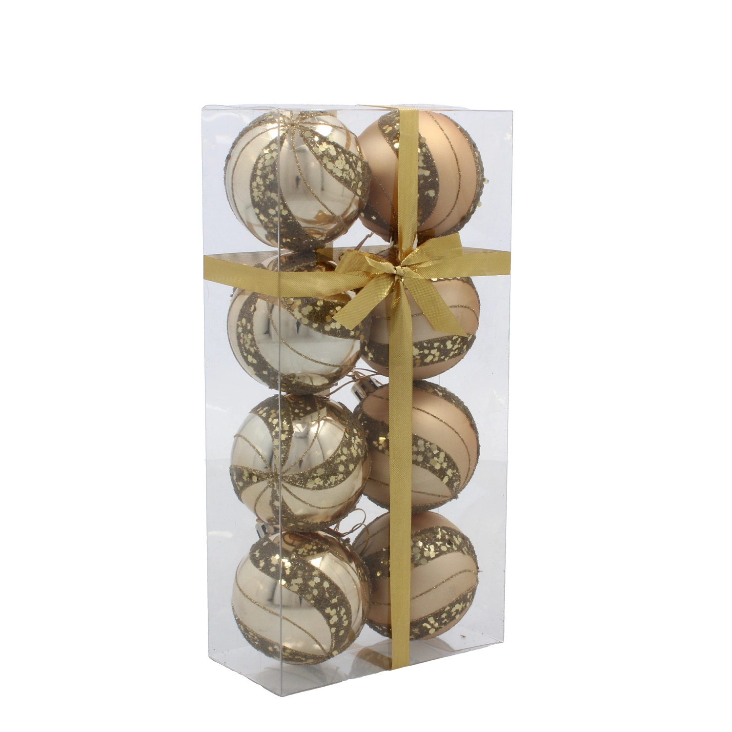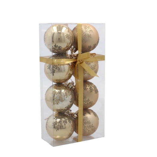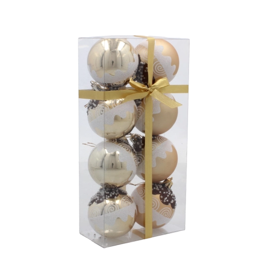 Osem gúľ v elegantných motívoch umožňuje vytvoriť pestrú a pritom zladenú výzdobu.