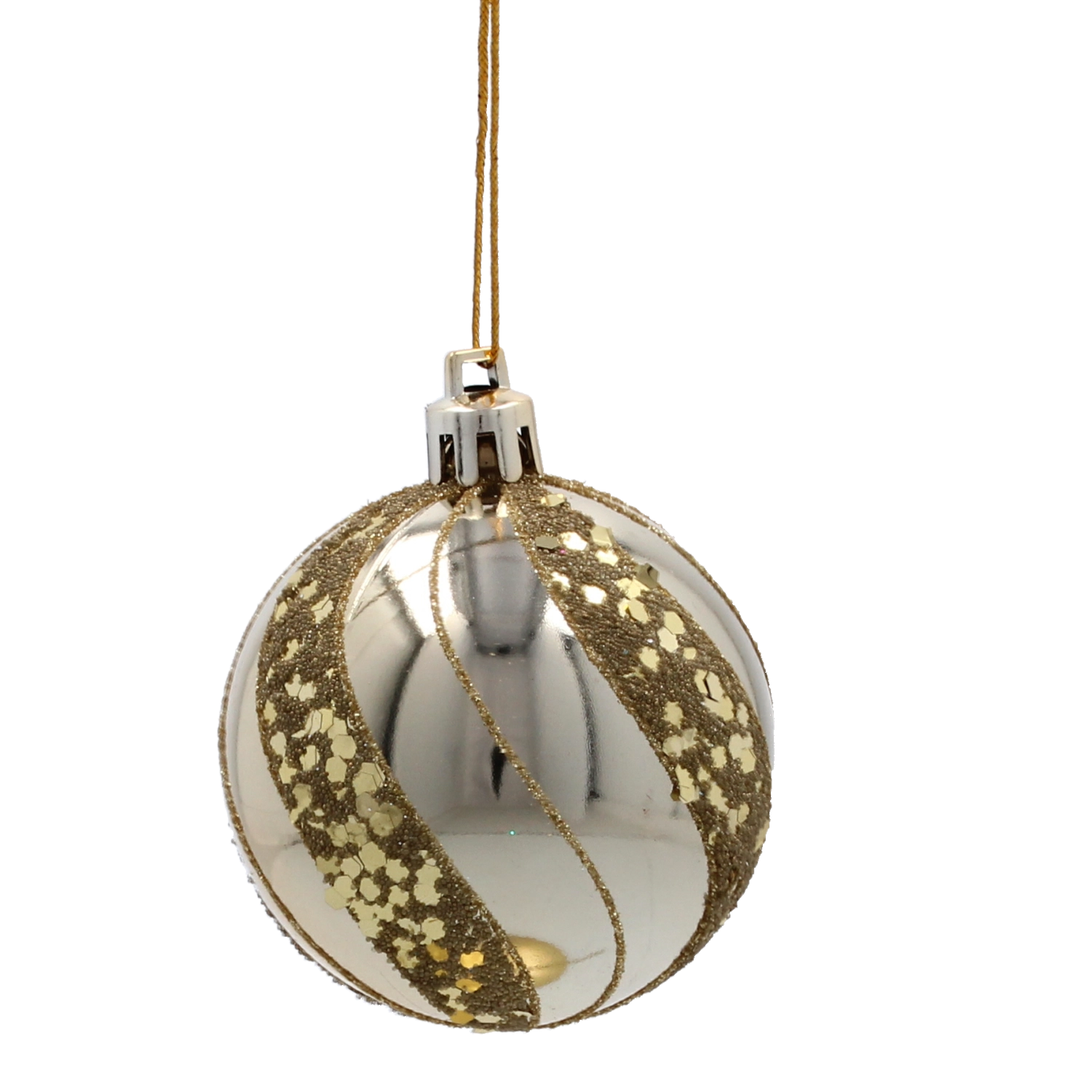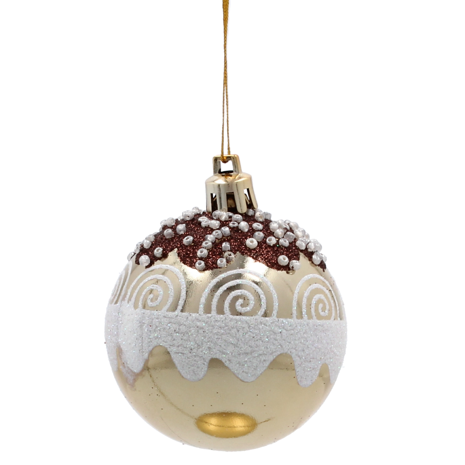 Rozžiarte svoj stromček elegantnou súpravou zlatých gúľ s priemerom 6 cm. Sada obsahuje 8 kusov v rôznych vzoroch pre harmonickú výzdobu, vyrobených z nerozbitného plastu pre bezpečie a odolnosť. Každá ozdoba má šnúrku na ľahké zavesenie, takže dekorovanie je rýchle a pohodlné.