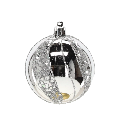 Vylaďte svoj interiér súpravou 6 strieborných gúľ, ktoré vďaka rôznym vzorom a povrchovým úpravám prinášajú do výzdoby hĺbku a dynamiku. Univerzálna strieborná farba sa ľahko kombinuje s tradičnými aj modernými dekoráciami a krásne odráža svetlo.
