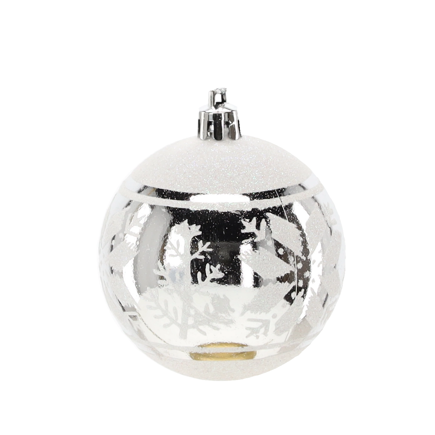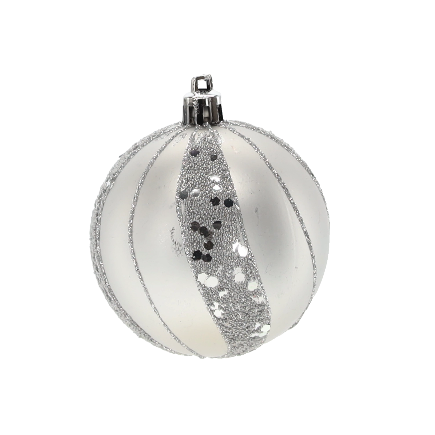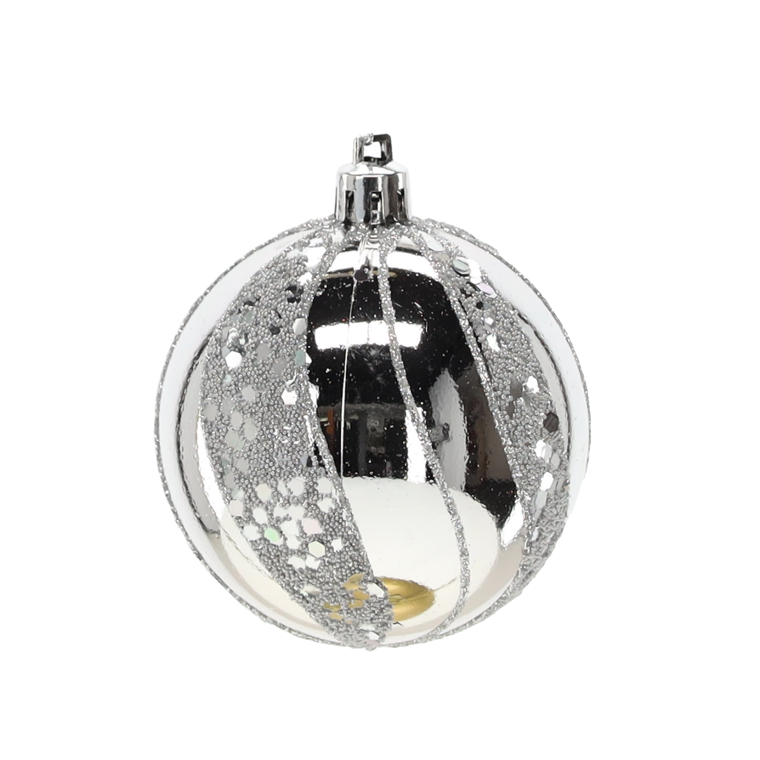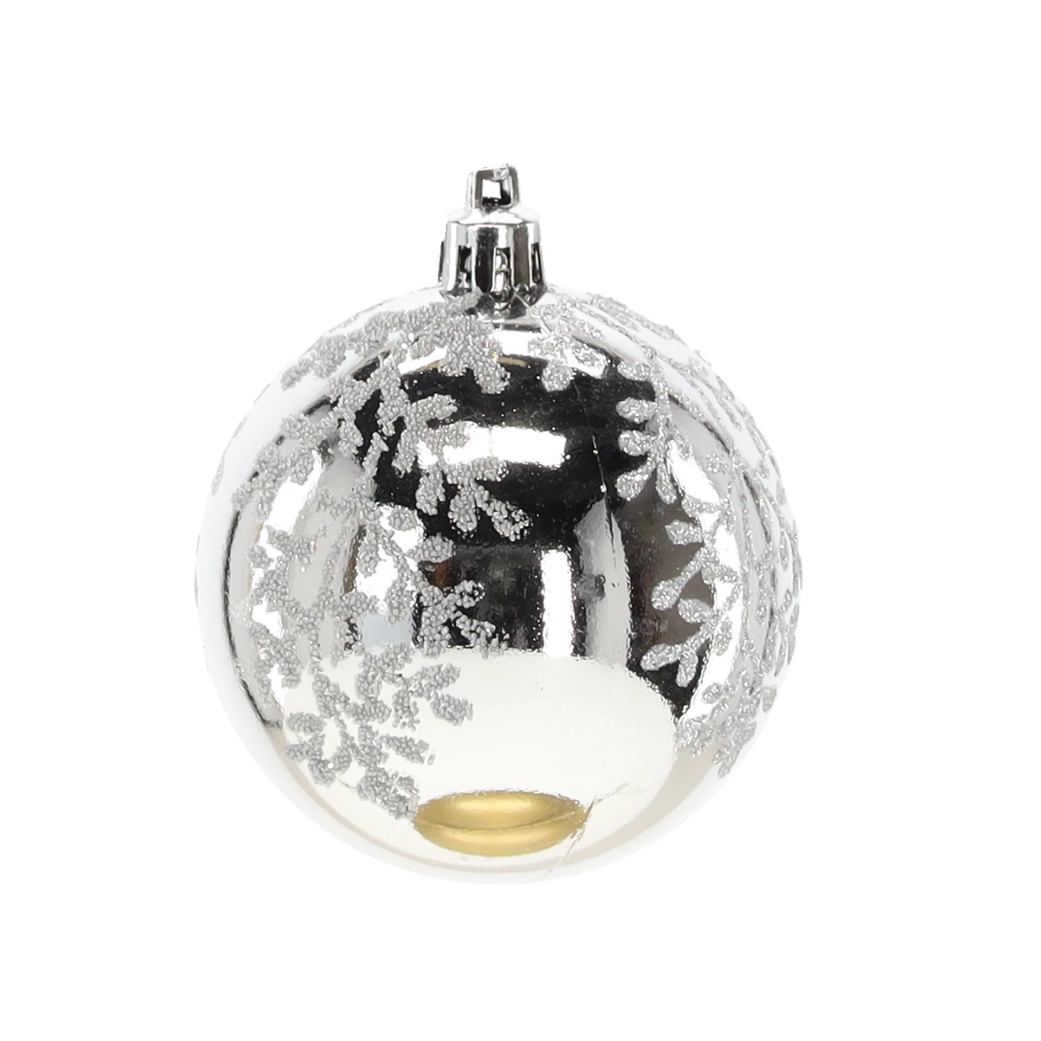 Elegantná súprava šiestich strieborných vianočných gúľ s priemerom 7 cm dodá vašej výzdobe lesk a eleganciu. Kombinácia matných a lesklých povrchov s trblietavými detailmi vytvára čarovnú sviatočnú atmosféru. Ľahký a odolný plast je bezpečný pre deti a ideálny na jednoduché zavesenie na stromček, vence, girlandy aj do stolových aranžmánov.
