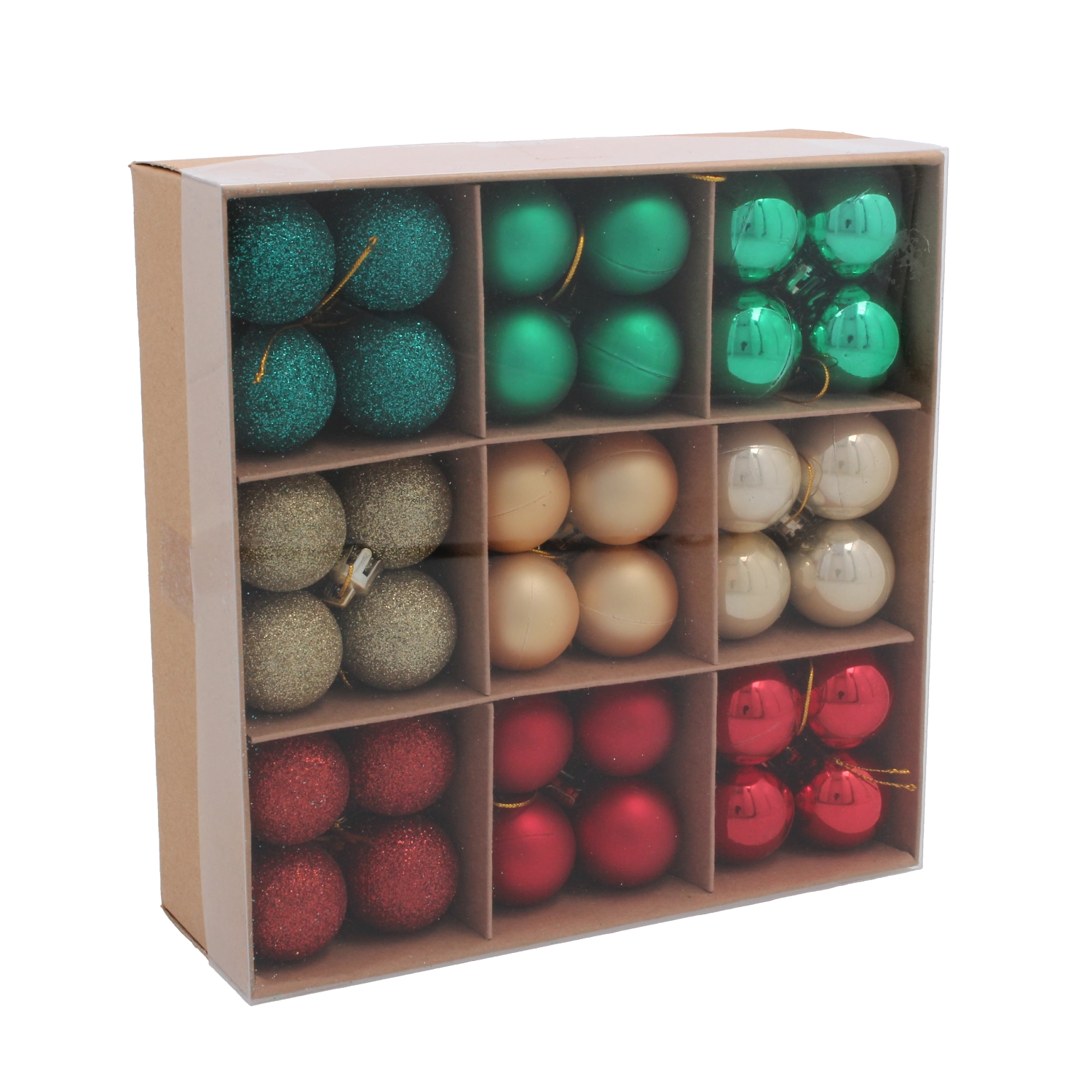 Dodejte svojmu stromčeku aj interiéru sviatočný lesk so sadou 72 kusov vianočných gulí s priemerom 3 cm v pestrej zmesi farieb a povrchov. Vďaka kombinácii matných, lesklých a trblietavých efektov ľahko vytvoríte harmonickú a štýlovú výzdobu. Ozdoby sú ľahké a odolné proti rozbitiu, ideálne do domácností s deťmi a domácimi miláčikmi a skvele sa hodia na stromček, vence, girlandy aj stolové dekorácie.