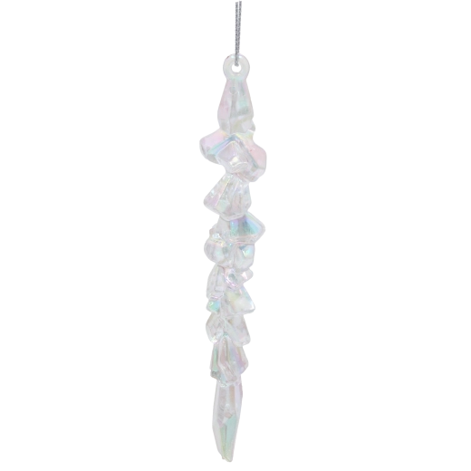 Elegantná vianočná ozdoba v tvare cencúľa s dĺžkou 15 cm s opalizujúcim povrchom dodá stromčeku efekt ľadového lesku. Ľahký a odolný plast je bezpečný aj do domácností s deťmi a vďaka šnúrke na jednoduché zavesenie ju umiestnite na stromček, vence, girlandy aj do okien.