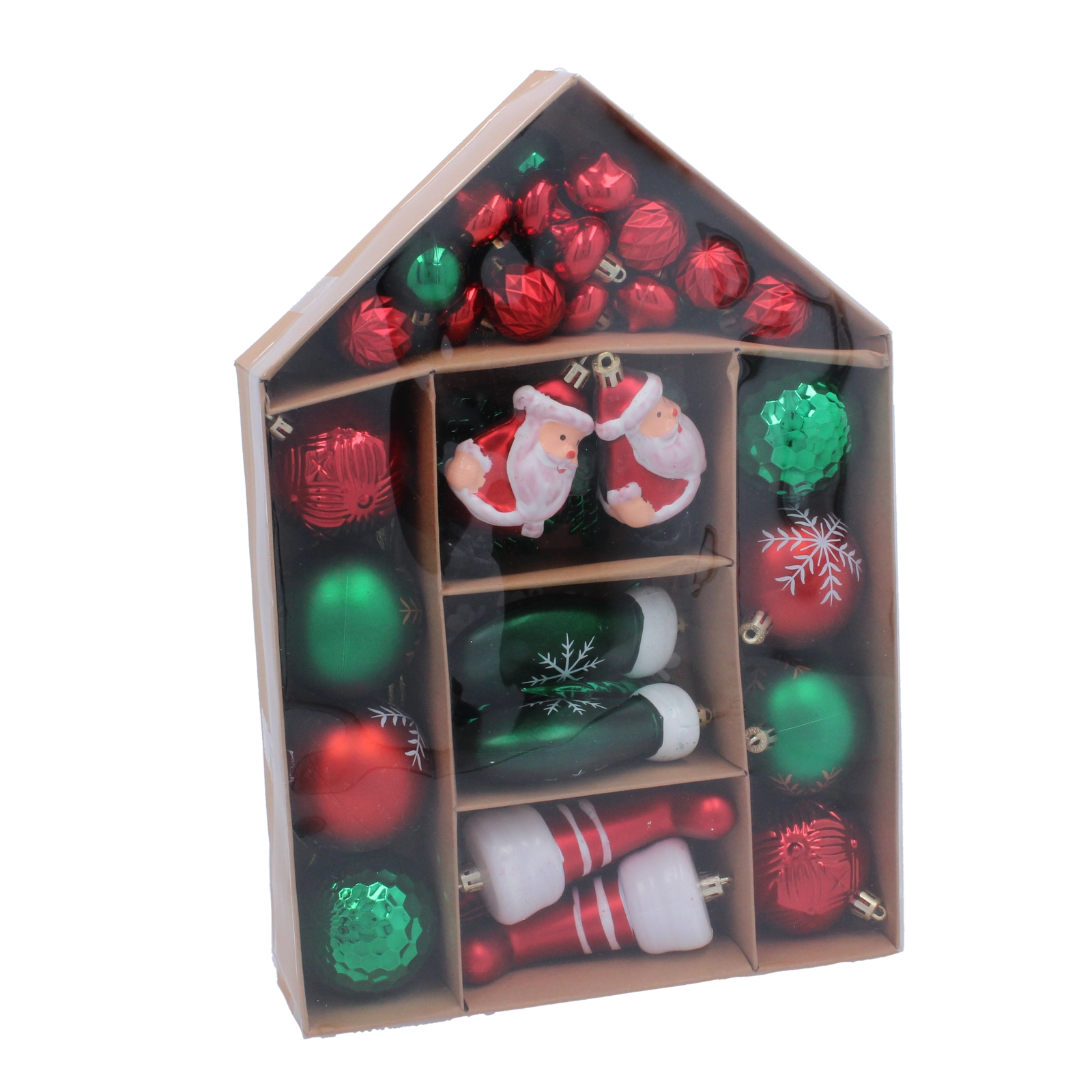 Súprava 66 vianočných ozdôb v zelenej a červenej farbe