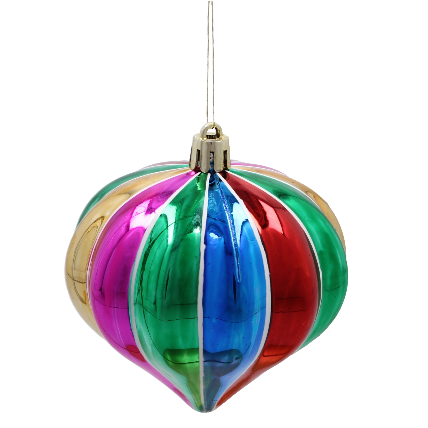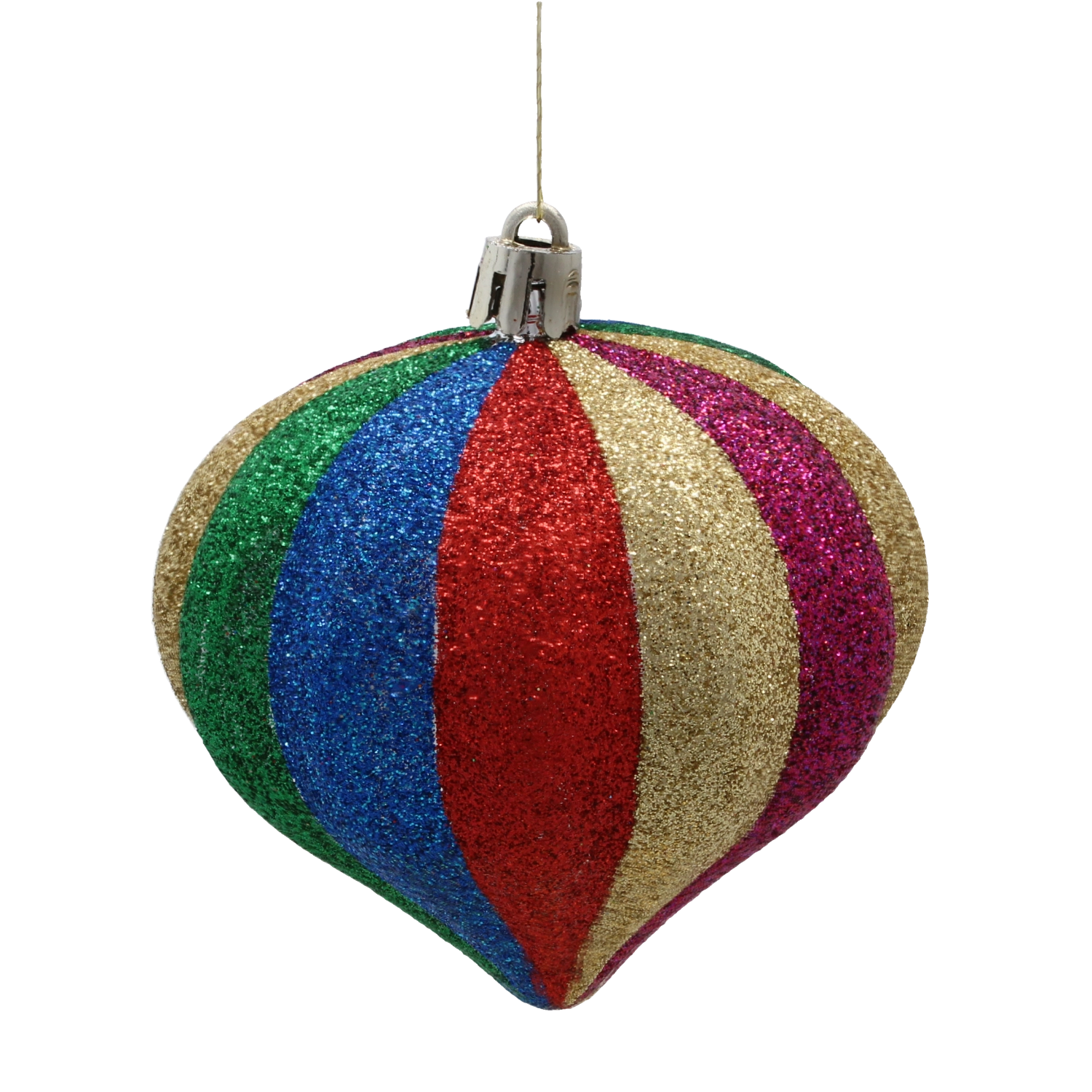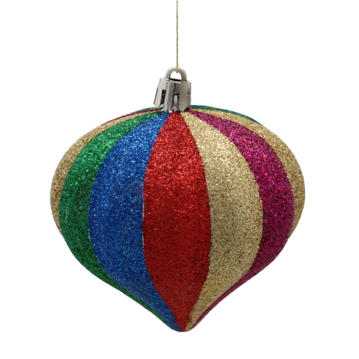Vertikálne viacfarebné pruhy a lesklý povrch okamžite upútajú pozornosť a rozžiaria každý vianočný stromček aj dekoráciu.