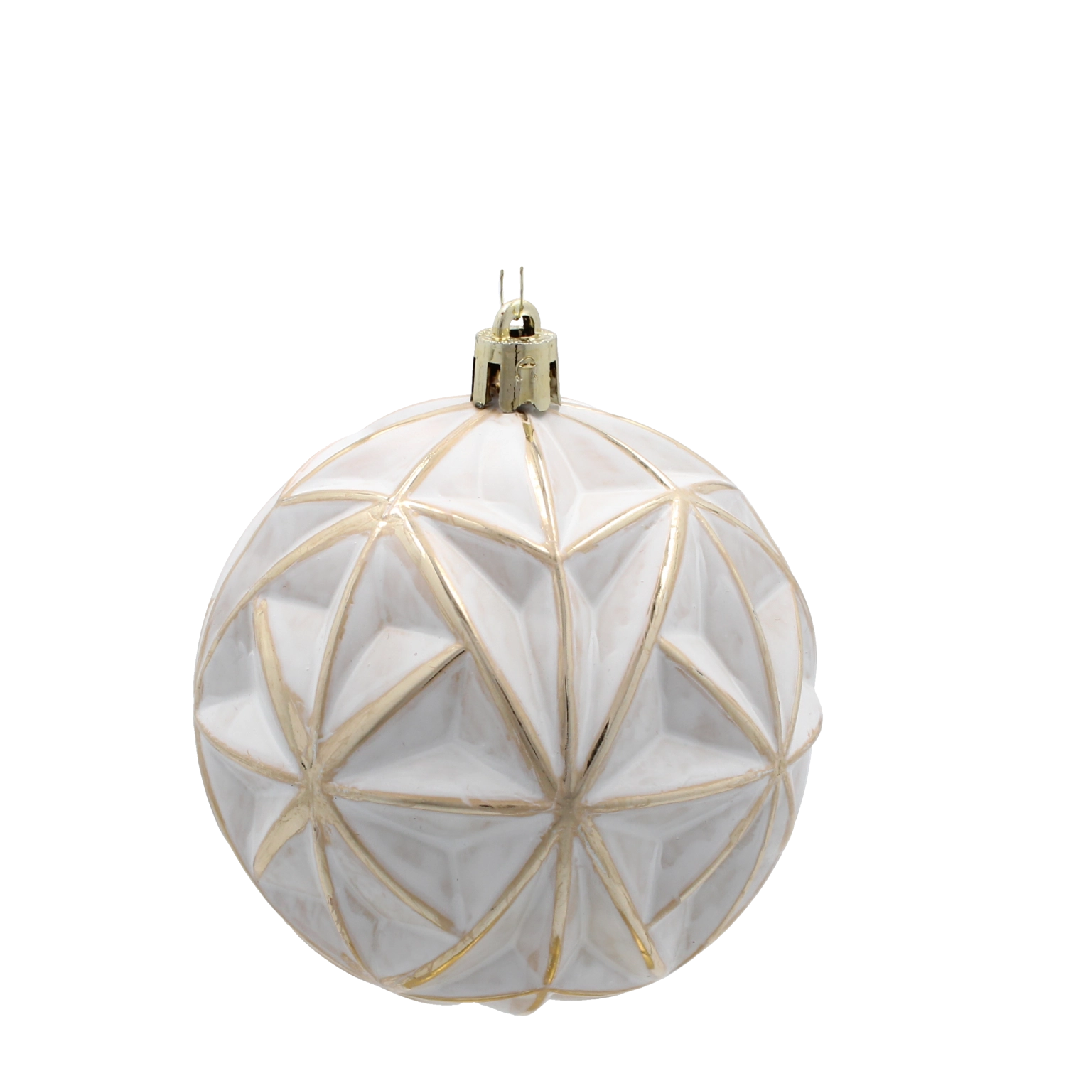 Táto štýlová sada vianočných ozdôb kombinuje čisto biele a zlaté tóny pre harmonický, reprezentatívny vzhľad. Vďaka väčšiemu priemeru 8 cm sú gule dobre viditeľné aj na bohato zdobenom stromčeku a priťahujú pozornosť svojim leskom i štruktúrovanými detailmi.