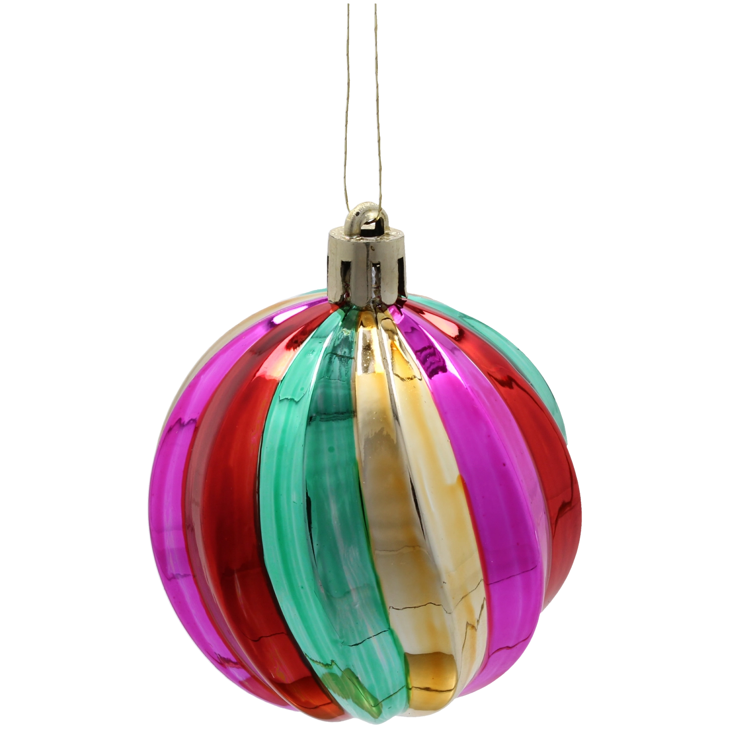 Ryhované prevedenie („tekvicový“ tvar) a trblietavý povrch vytvárajú výrazný svetelný efekt na stromčeku aj v aranžmánoch.