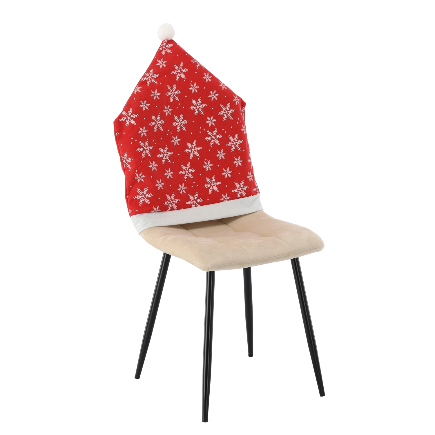 Vneste do jedálne kúzlo Vianoc s týmto vianočným poťahom na operadlo stoličky v štýle čiapky. Ľahko sa navlieka, chráni operadlo a okamžite dodá interiéru sviatočnú atmosféru. Mäkká textília s motívom snehových vločiek, bielym lemom a brmbolcom premení bežné stoličky na efektnú vianočnú dekoráciu počas pár sekúnd.