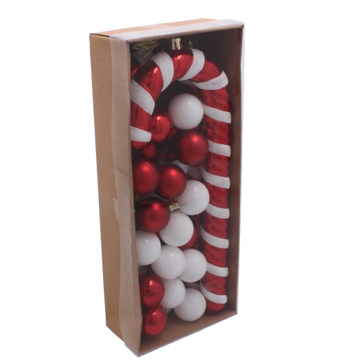 Vneste do svojho domova kúzlo Vianoc so štýlovou sadou 32 ozdôb, ktorá kombinuje cukrovú paličku 25 cm a mix gulí s priemerom 3 cm v tradičných farbách. Vďaka netrieštivému plastu sú ozdoby ľahké, bezpečné a odolné, zatiaľ čo rôzne povrchové úpravy a jednoduché zavesenie pomocou šnúriek zaručia rýchlu a elegantnú výzdobu stromčeka.