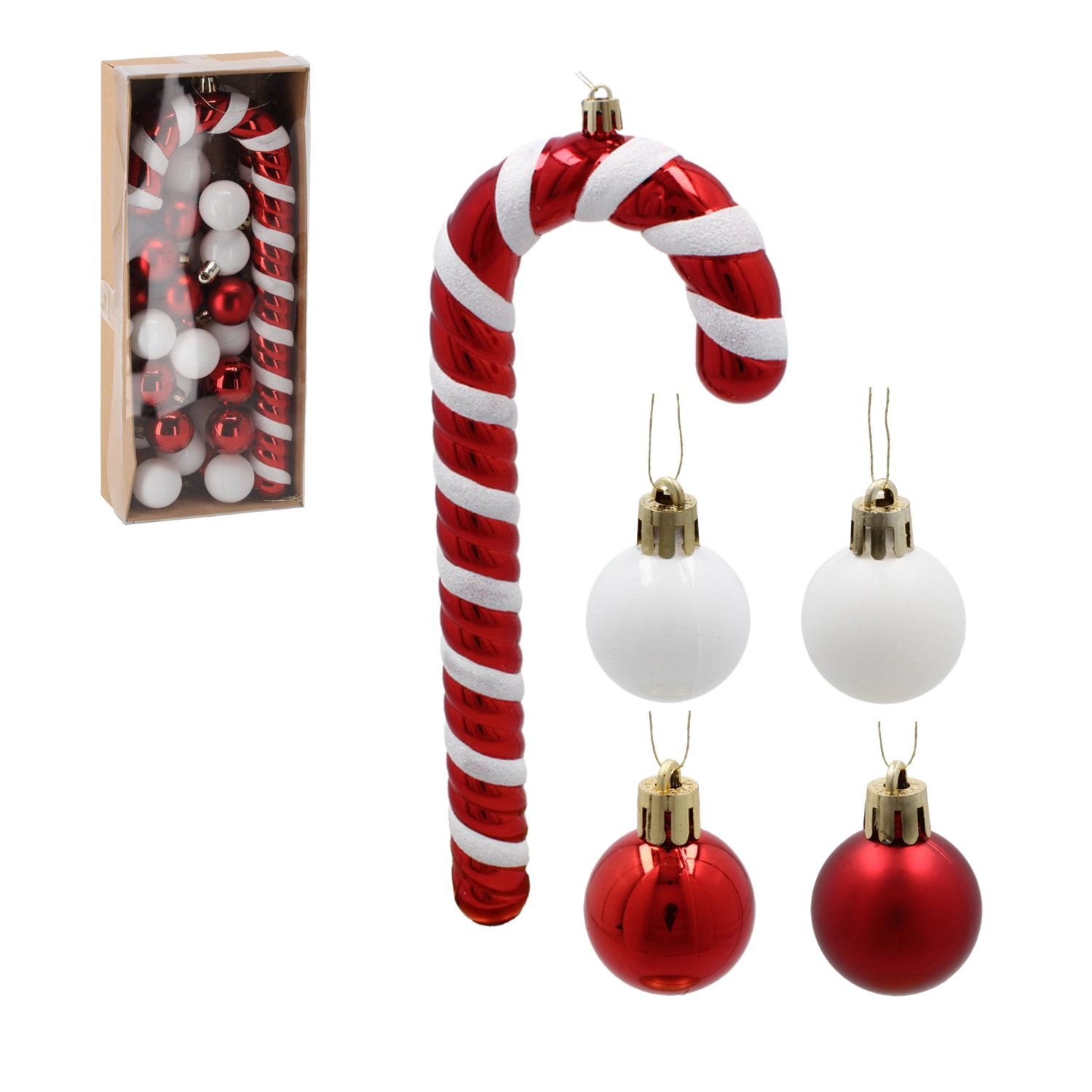 - 1× cukrová palička (25 cm), 31× guľa (priemer 3 cm)