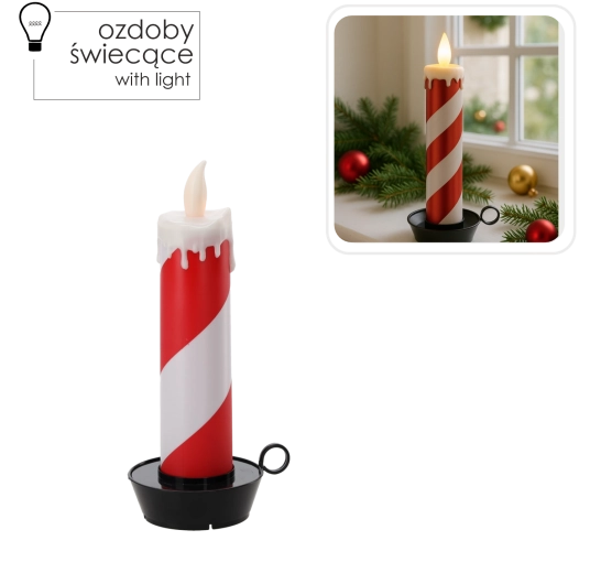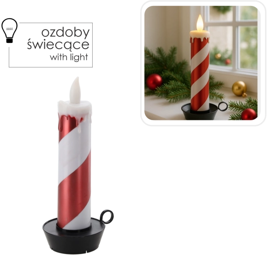 Táto štýlová LED sviečka s pruhovaným bielo‑červeným dizajnom pripomínajúcim cukrovú palicu rozžiari každý interiér. Teplé, mihotavé svetlo navodí útulnú náladu bez rizika otvoreného ohňa a bez neporiadku z odkvapkávajúceho vosku.