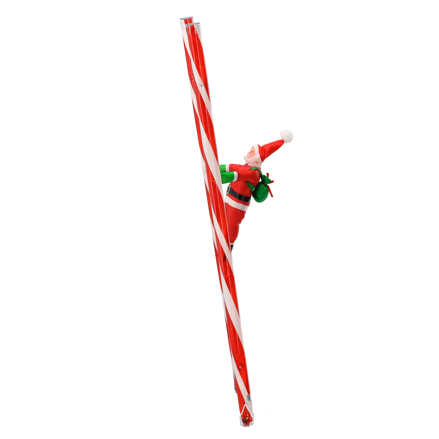 Vytvorte doma čarovnú vianočnú atmosféru so štýlovou dekoráciou Santa na pruhovanom rebríku. Figúrka s až 61 teplými bielymi Micro LED jemne presvieti interiér, funguje na batérie AA alebo USB a vďaka praktickému prepínaču ON/OFF ju ľahko rozsvietite, kedykoľvek budete chcieť.
