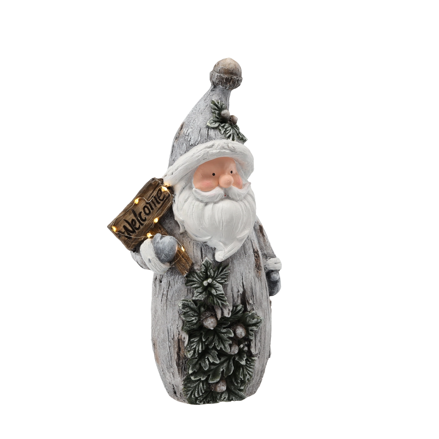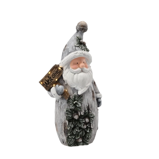 Štýlová vianočná figúrka SANTA s nápisom „Welcome“ rozžiari váš domov vďaka integrovanému LED osvetleniu. Vďaka kompaktným rozmerom sa skvele hodí na policu, komodu či okenný parapet. Kvalitný materiál z magnezitovej zmesi a napájanie na 3× AAA batérie (nie sú súčasťou) zaručujú jednoduché umiestnenie bez káblov.