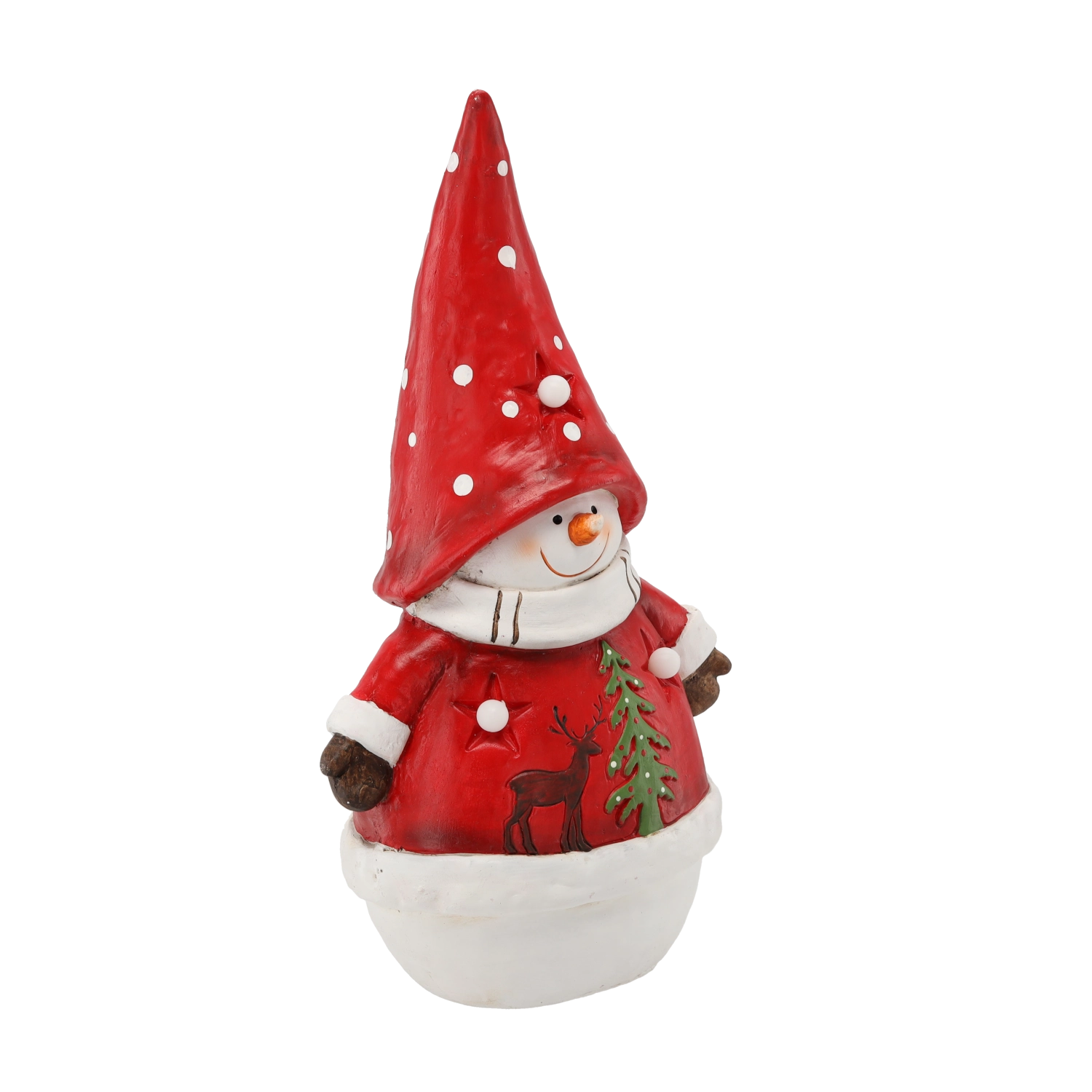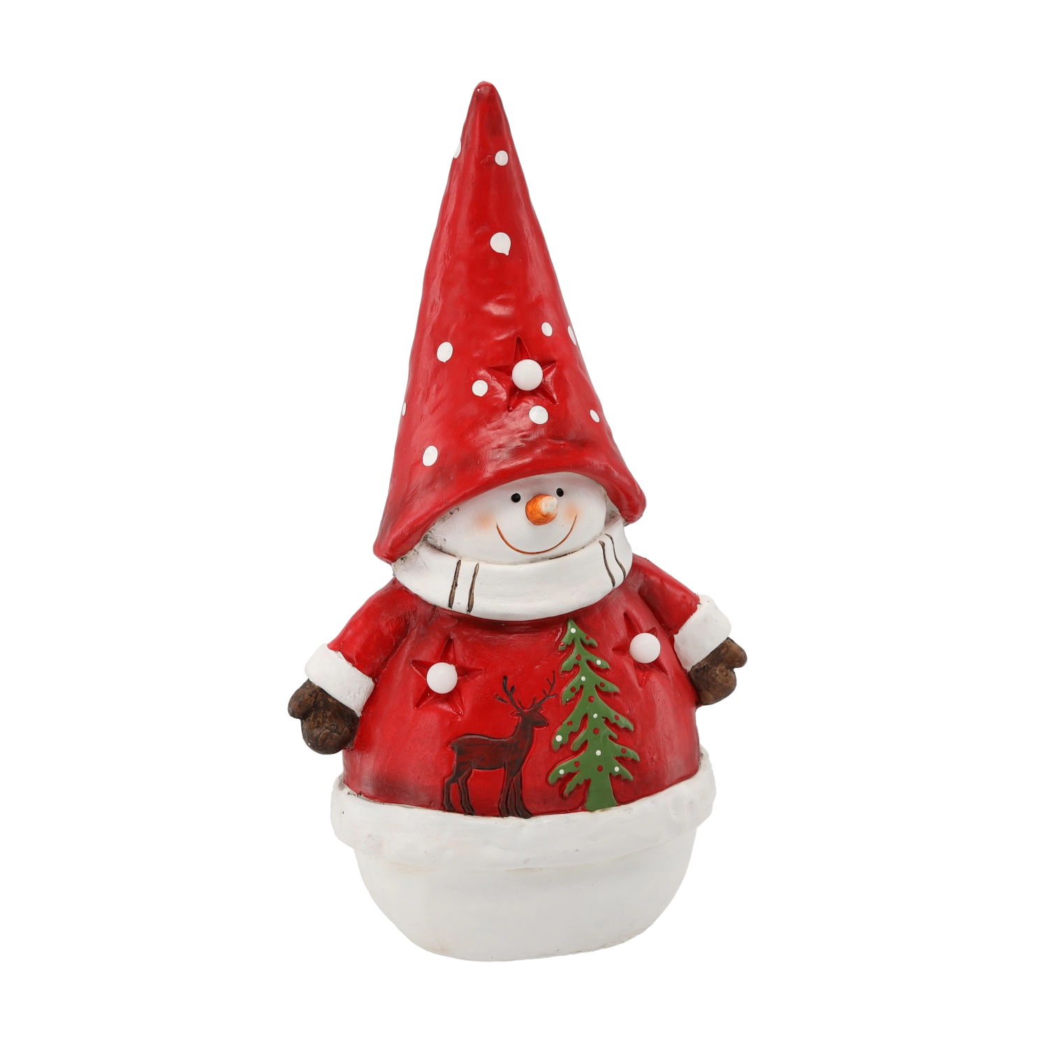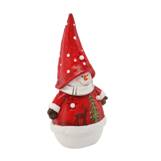 Táto vianočná figúrka snehuliaka v červenej čiapke a kabátiku s bielymi bodkami je výrazným prvkom sviatočnej dekorácie. Vďaka integrovanému LED osvetleniu sa jemne rozžiari a vytvorí príjemnú, zimne ladenú atmosféru v každej miestnosti. Kvalitný materiál z magnéziovej keramiky zaisťuje stabilitu a dlhú životnosť.