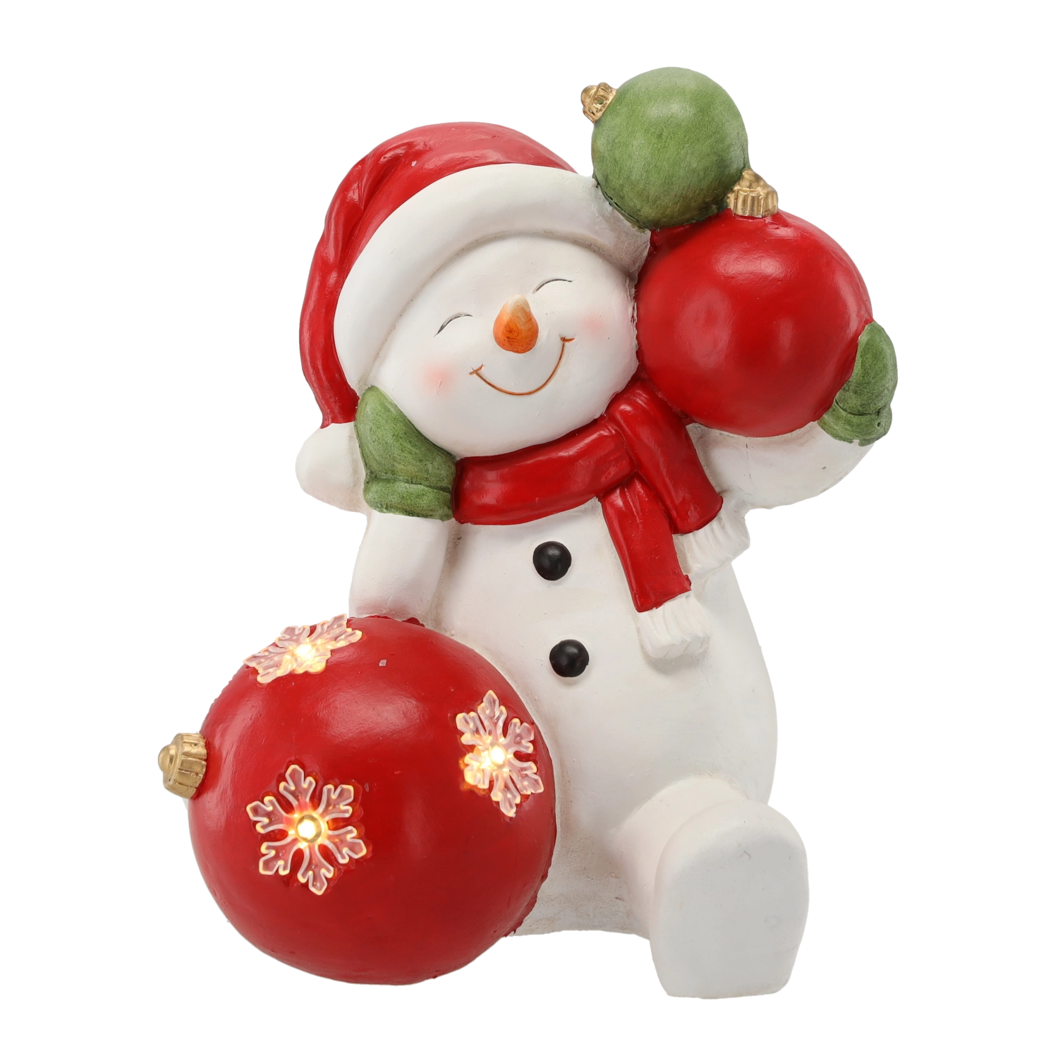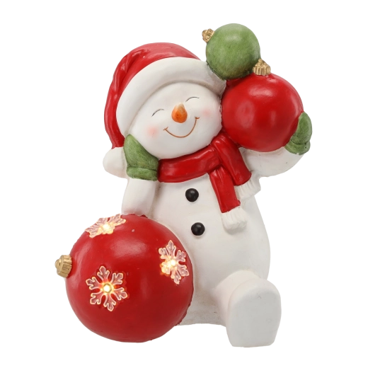 Roztomilá vianočná dekorácia v podobe snehuliaka s guľôčkami rozžiari váš domov vďaka integrovanému LED osvetleniu. Figúrku z odolnej magneziovej keramiky ľahko umiestnite na poličku, komodu či okenný parapet. Praktické napájanie na 3× AAA batérie (nie sú súčasťou) zabezpečuje bezpečnú a flexibilnú prevádzku bez káblov.