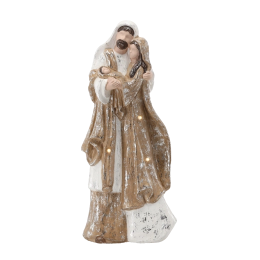 Táto prepracovaná dekorácia Svätej rodiny je ideálna na vytvorenie vianočnej nálady doma, v kancelárii aj na recepcii. Integrované LED podsvietenie jemne zvýrazňuje detaily a dodáva soche hrejivý, slávnostný vzhľad. Vďaka výške 55 cm pôsobí ako výrazná, no stále vkusná dominanta sviatočnej výzdoby.