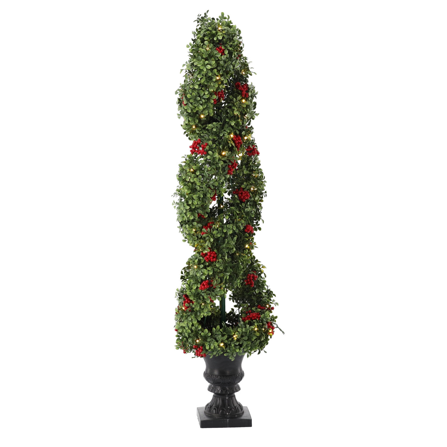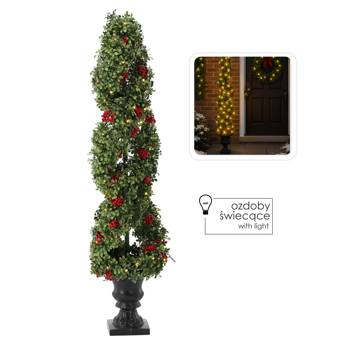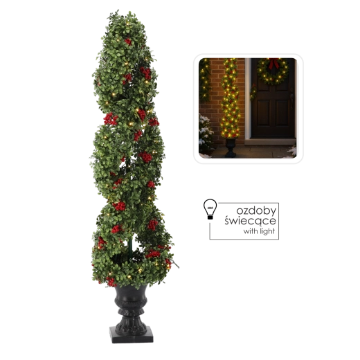 Elegantný vianočný stromček s teplými LED vnesie do interiéru čarovnú sviatočnú atmosféru. Realistické zelené vetvičky, červené jarabiny a 100 teplých LED vytvárajú príjemné mäkké svetlo bez starostí s opadávaním ihličia. Stabilný ozdobný kvetináč a sieťové napájanie s 3 m káblom zaistia jednoduché umiestnenie doma aj v kancelárii.